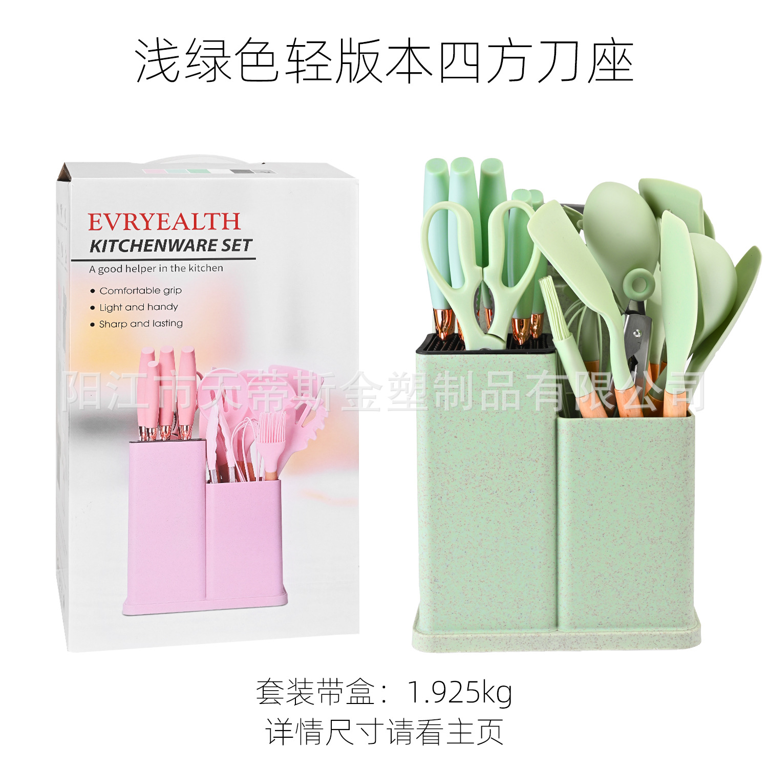 2000g heavy edition kitchenware 19-piece set square bucket-light green