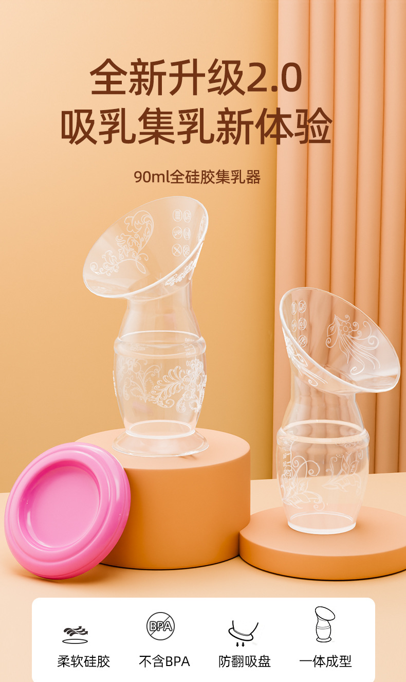 silicone breast pump (with suction cup) pink lid