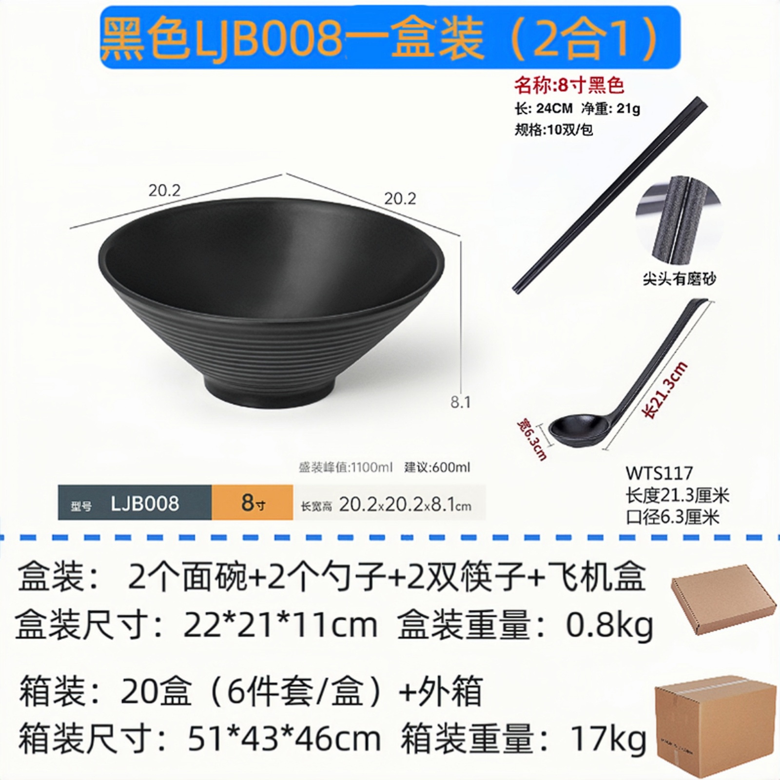 black ljb008 (2-in-1)1 boxed 6-piece set