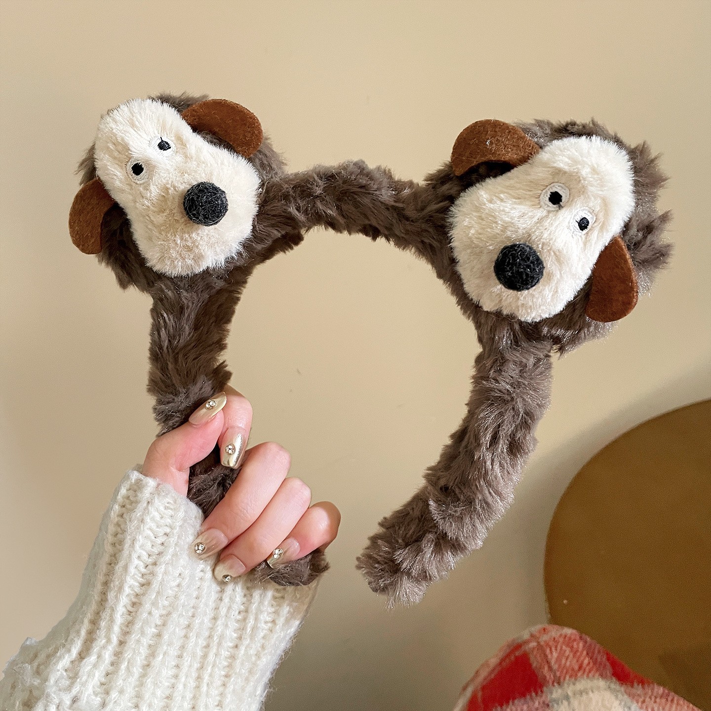 fluffy hair band coffee color