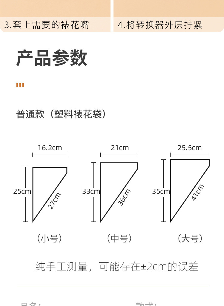 packaging specifications: large extra thick coffee color decorating pouch 10 silk 100 pieces, large plus
