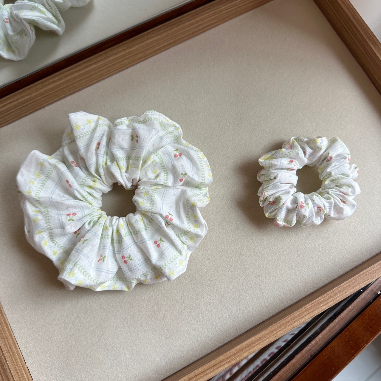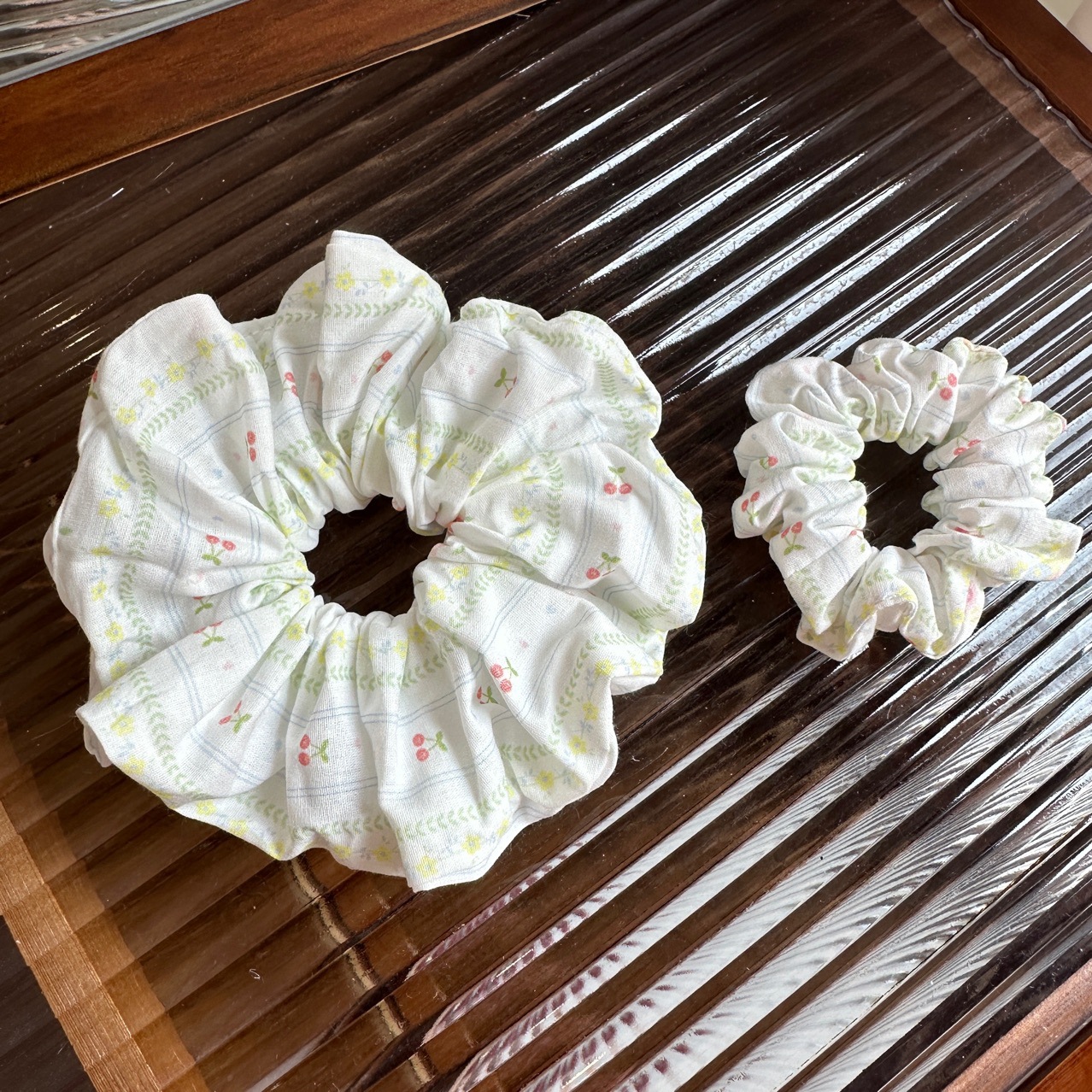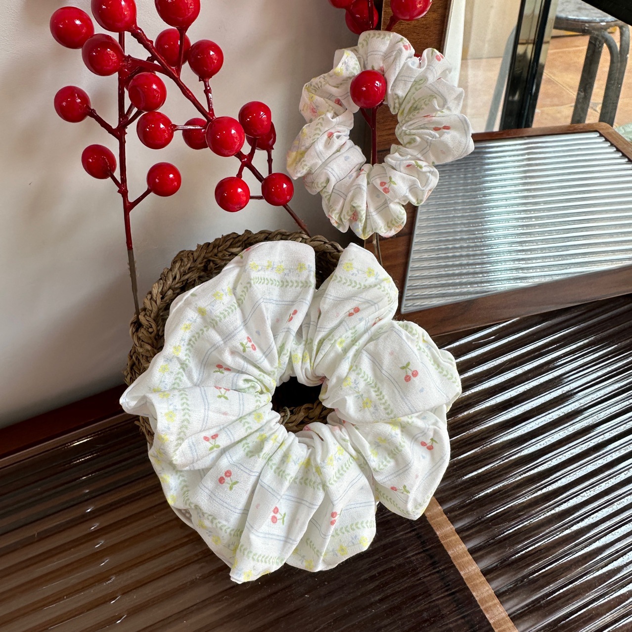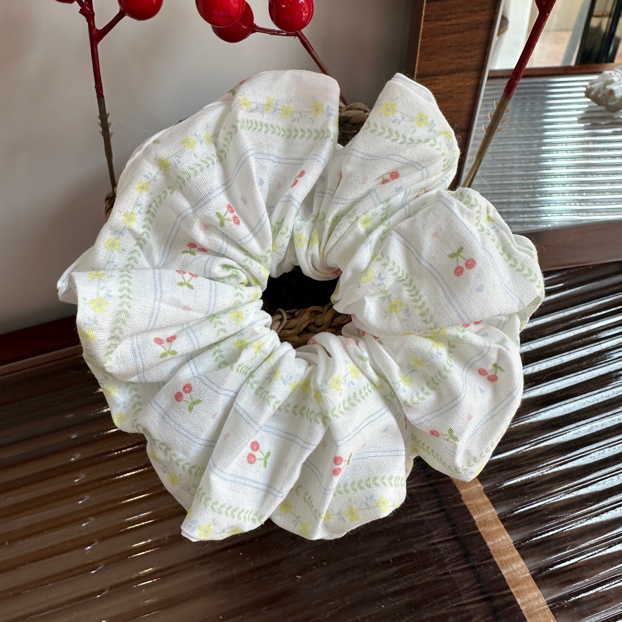 green, fresh-style cherry-shaped hair tie
