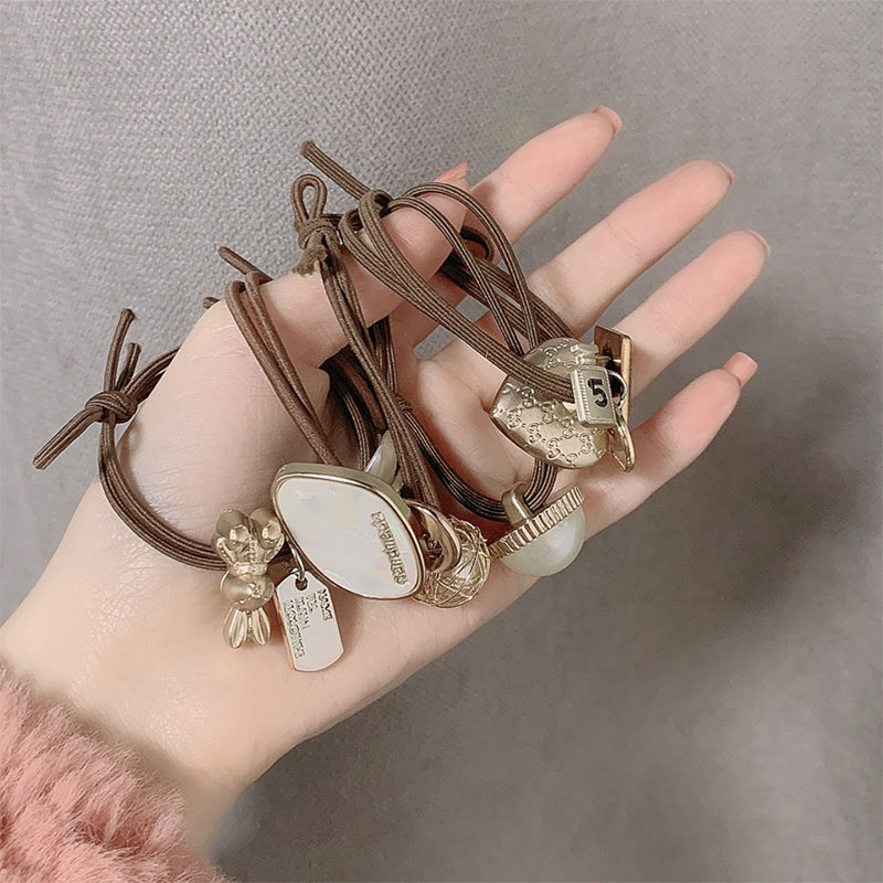 light coffee hair ties, 5-piece set-hy