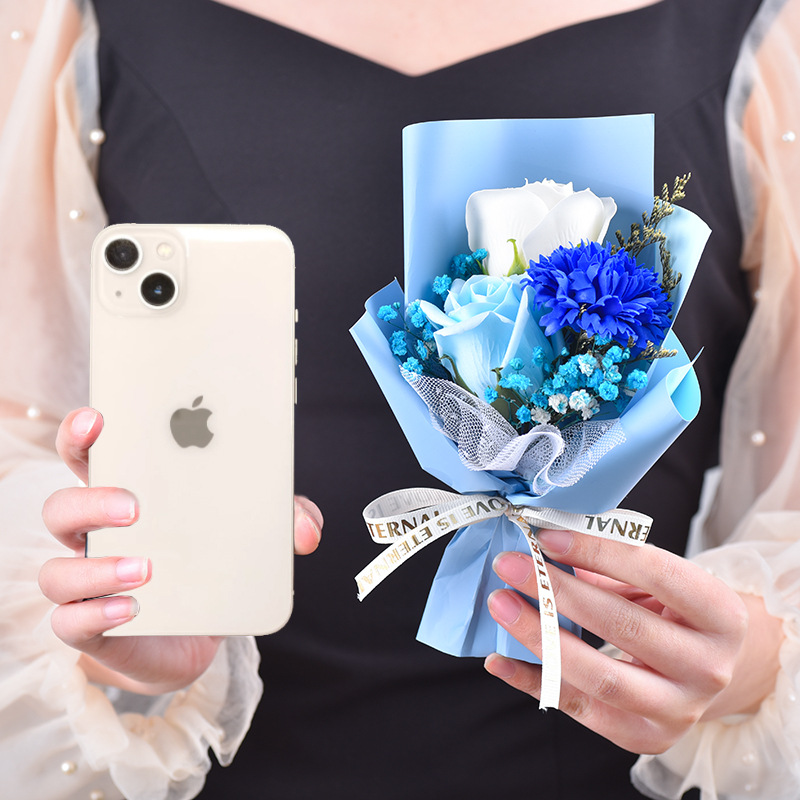 3 blue carnation bouquet