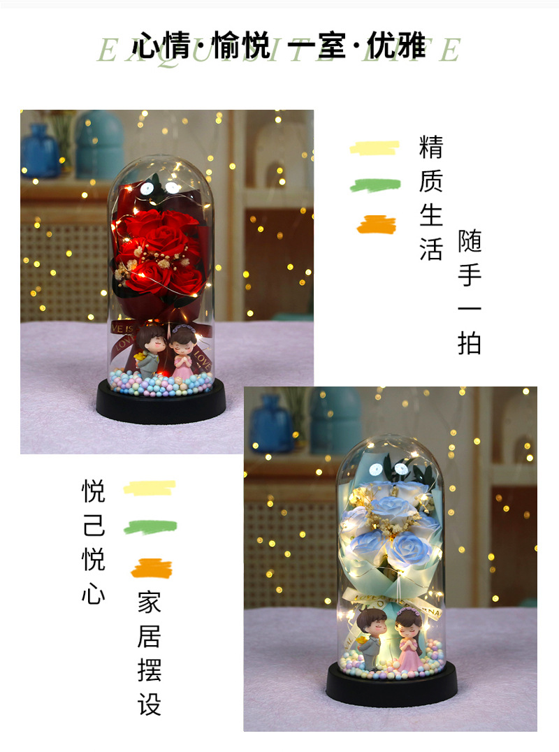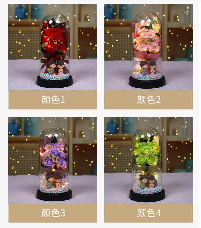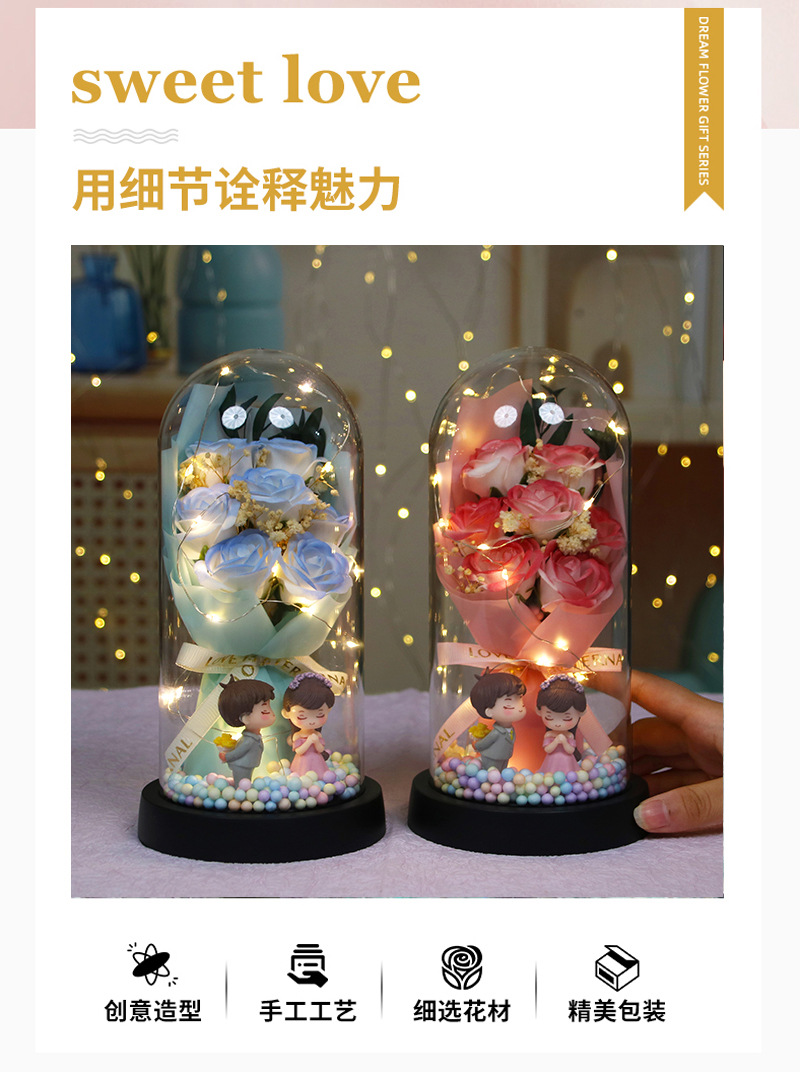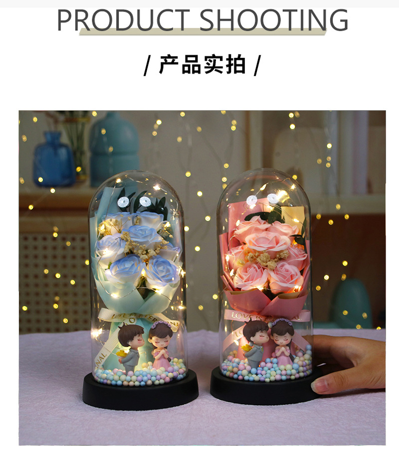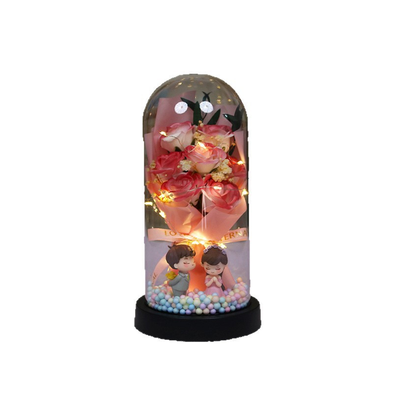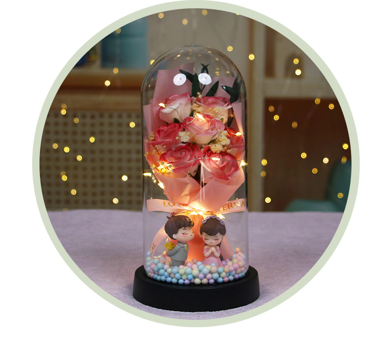 [7 romantic pink roses] colored balls + couple doll (finished product)