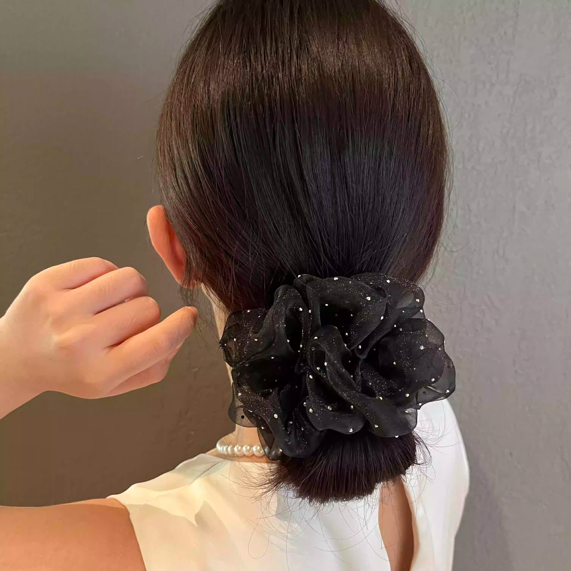 12# white diamond large intestine hair tie