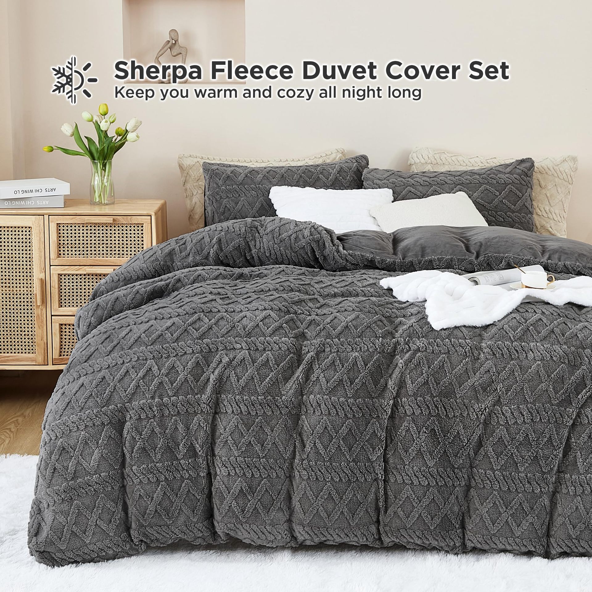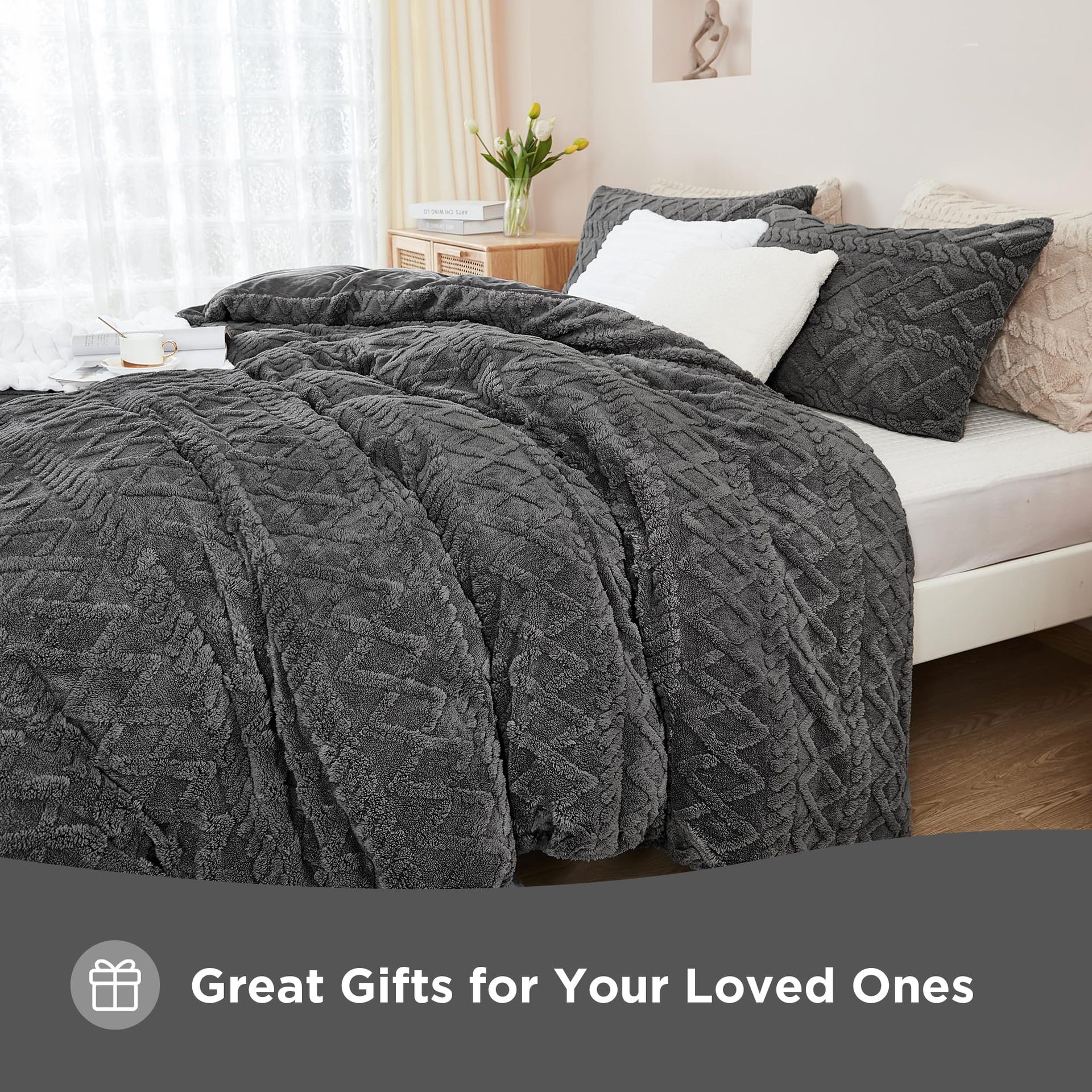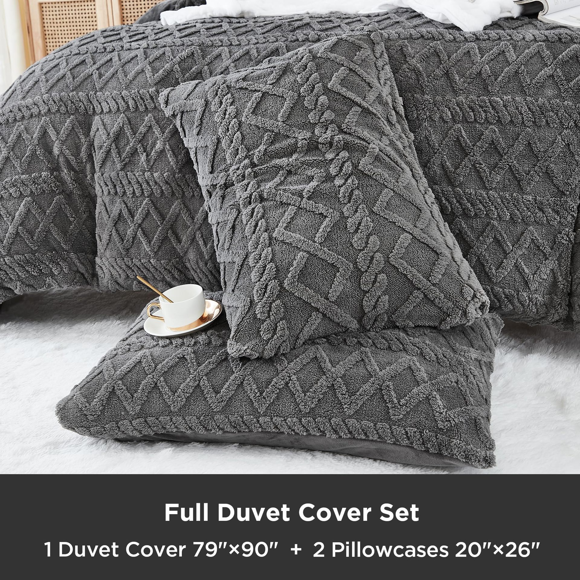 US Queen: A comforter size 228x228cm, two pillowcases size 50x75cm