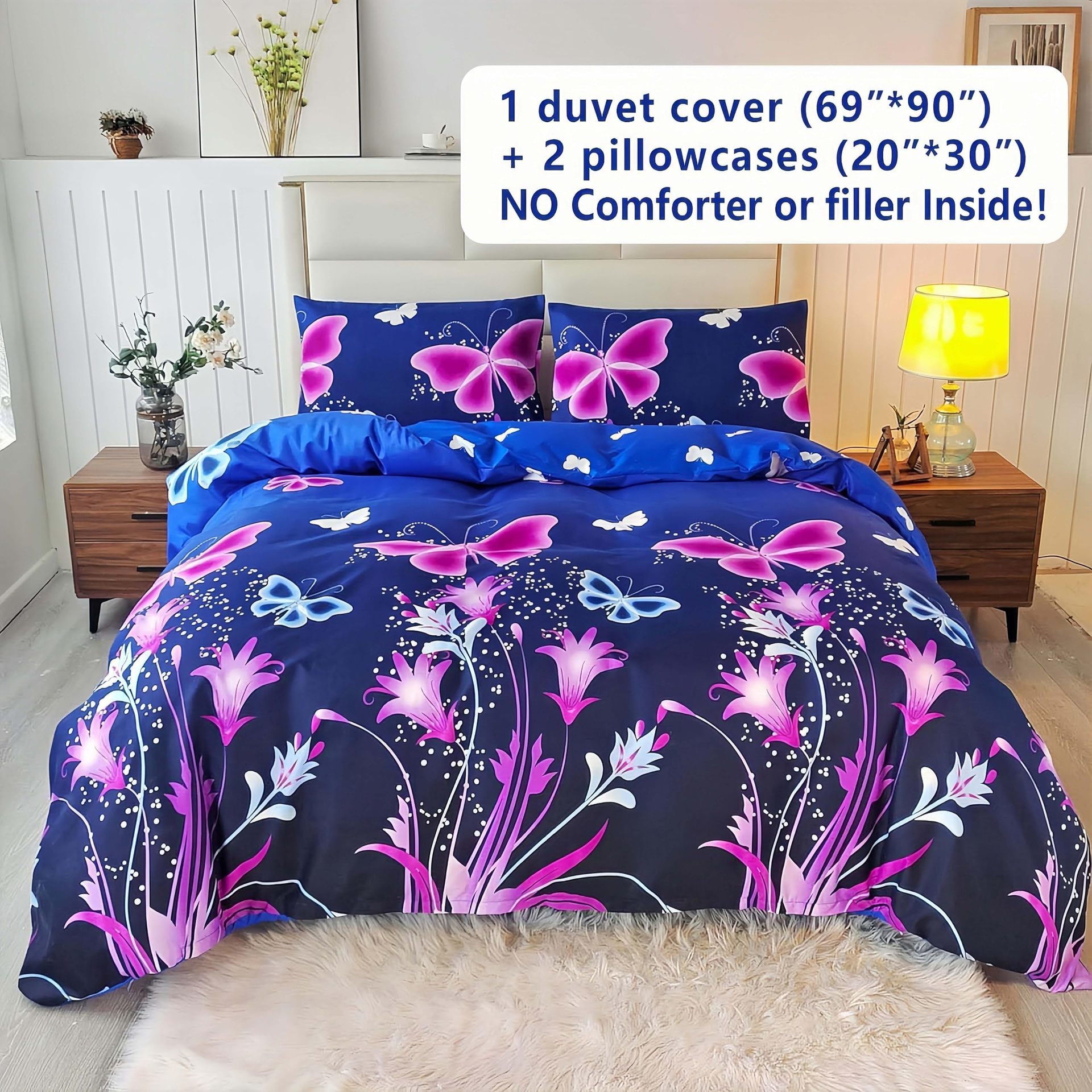 US Queen: A comforter size 228x228cm, two pillowcases size 50x75cm