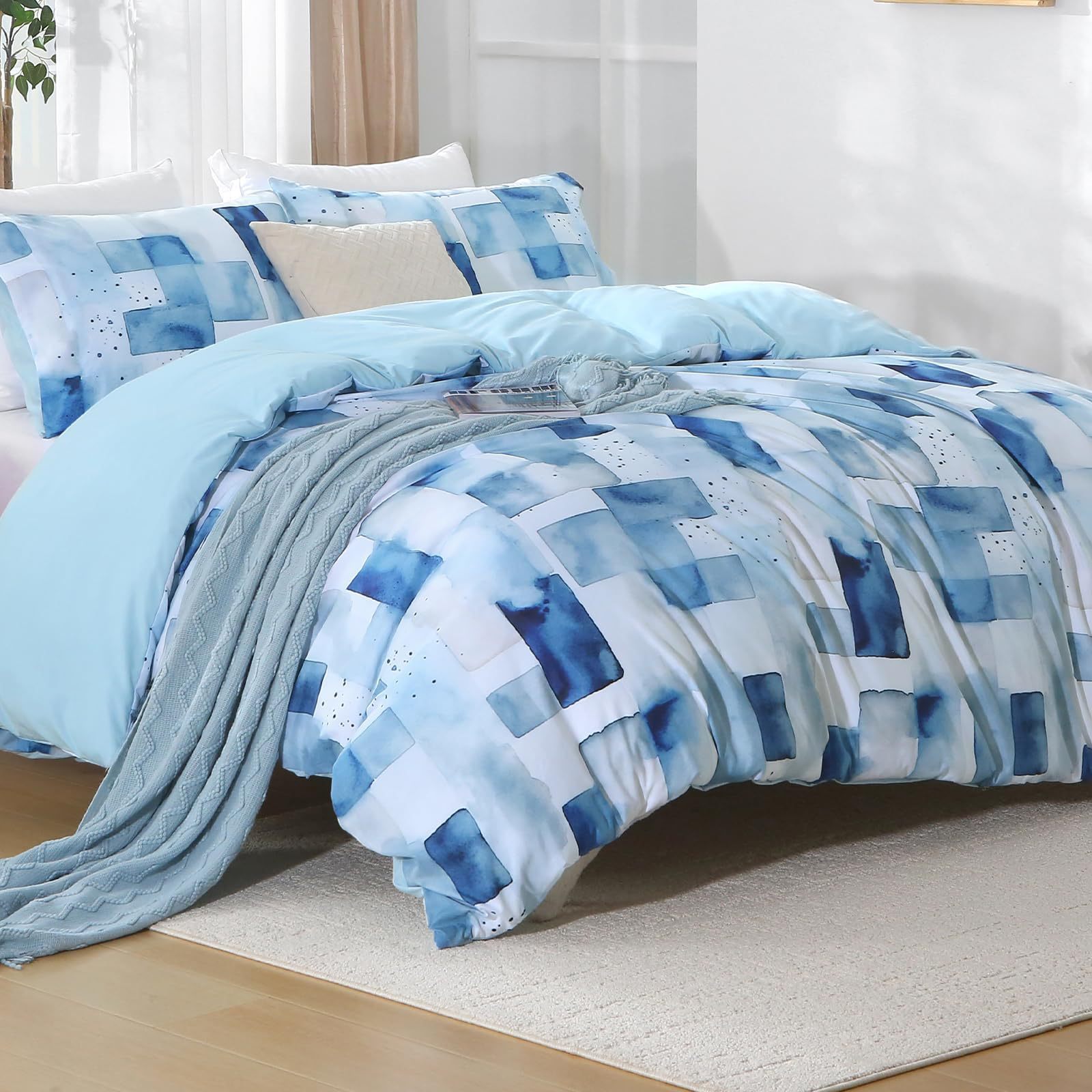 US Queen: A comforter size 228x228cm, two pillowcases size 50x75cm