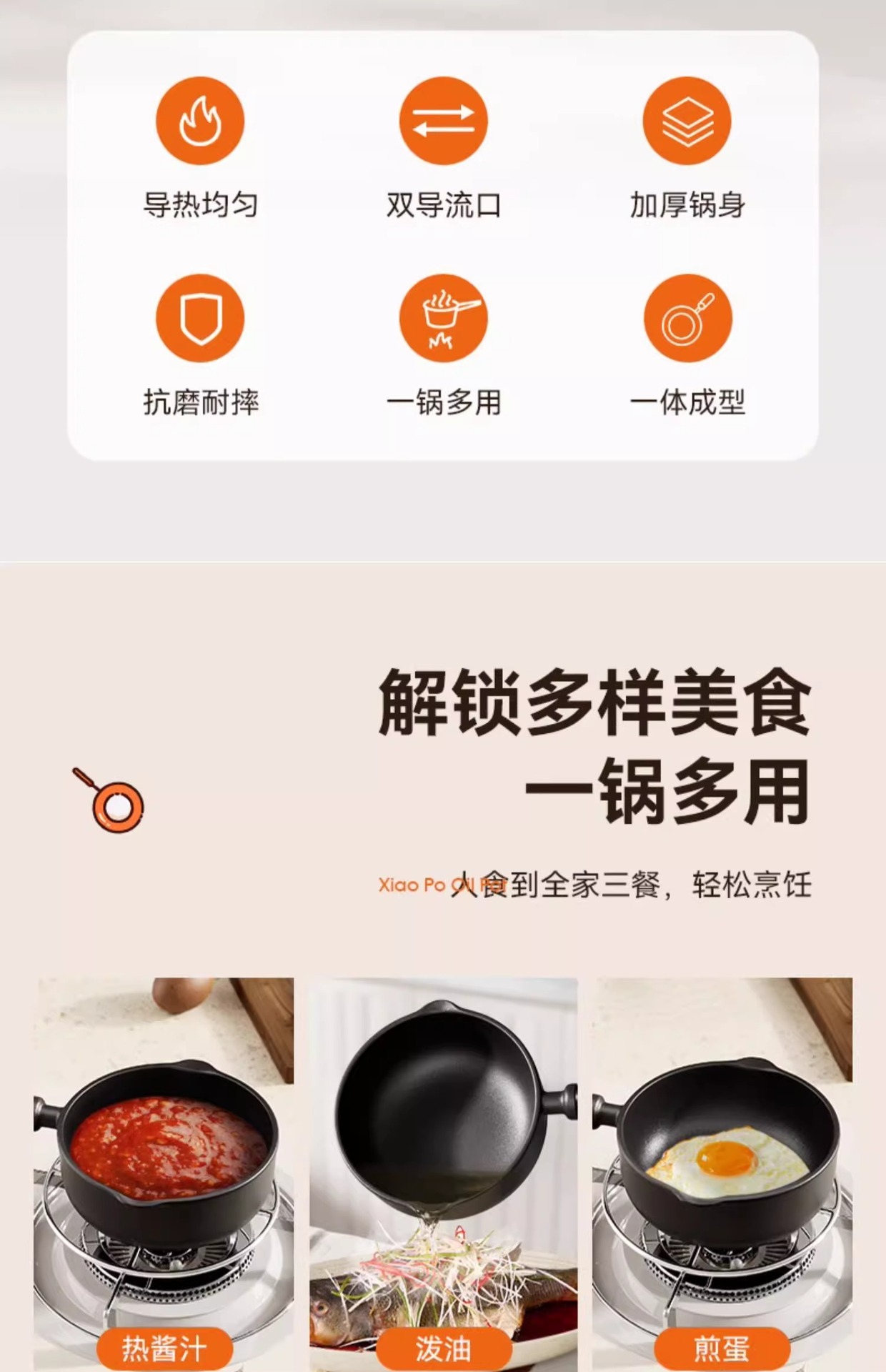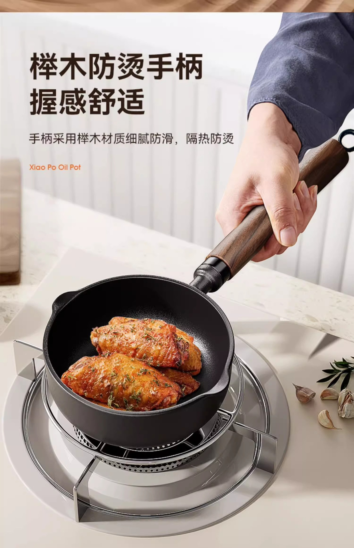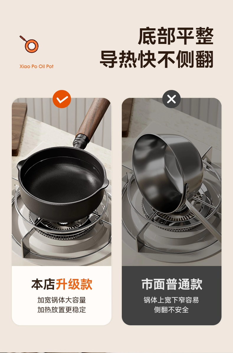 13cm upgraded-handle frying pan for stir-frying with oil