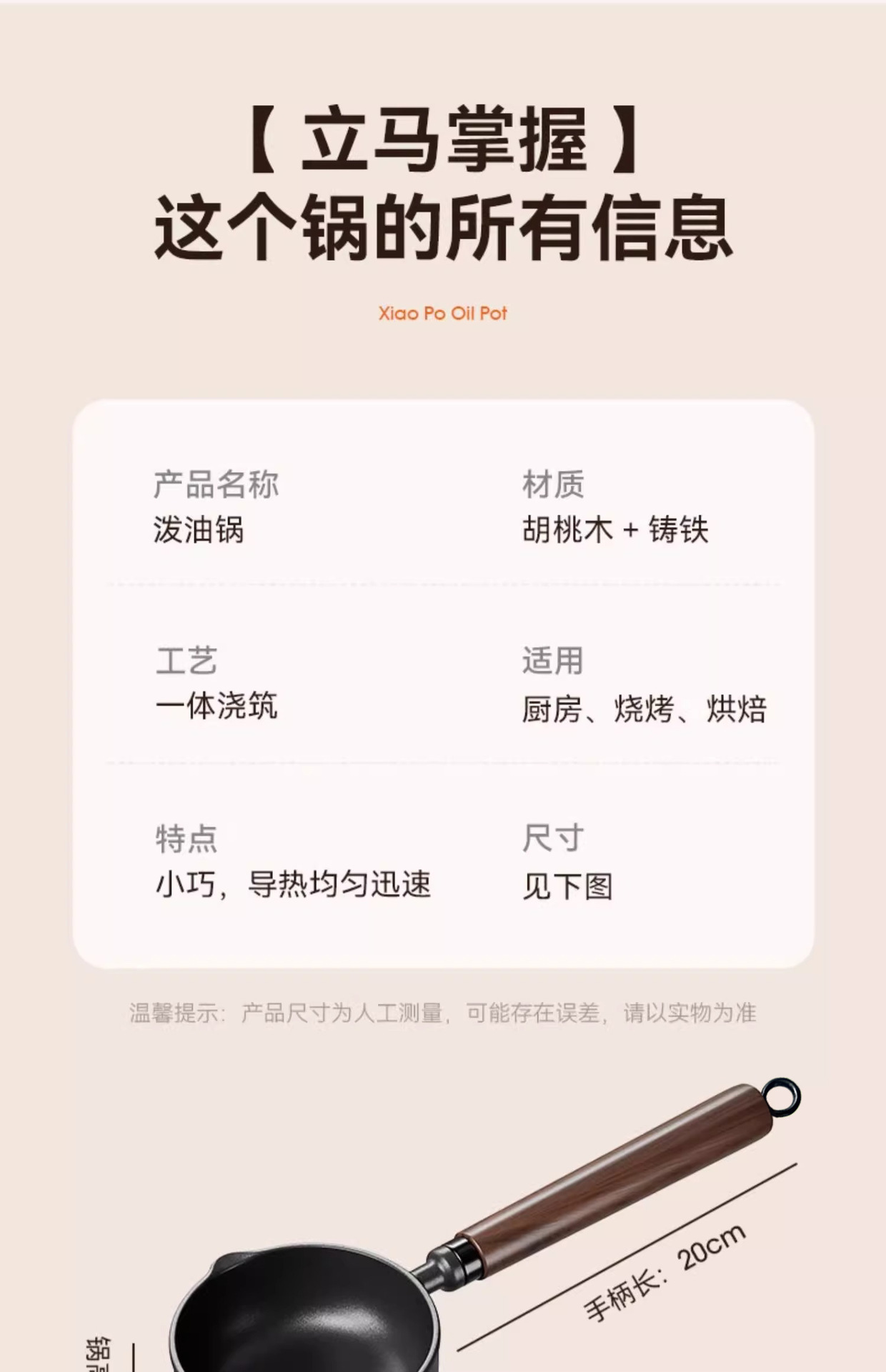 13cm upgraded-handle frying pan with oil + spatula/brush set