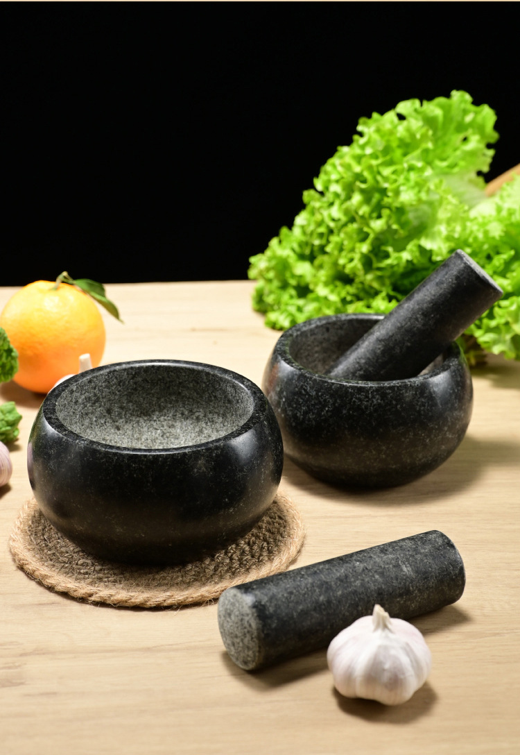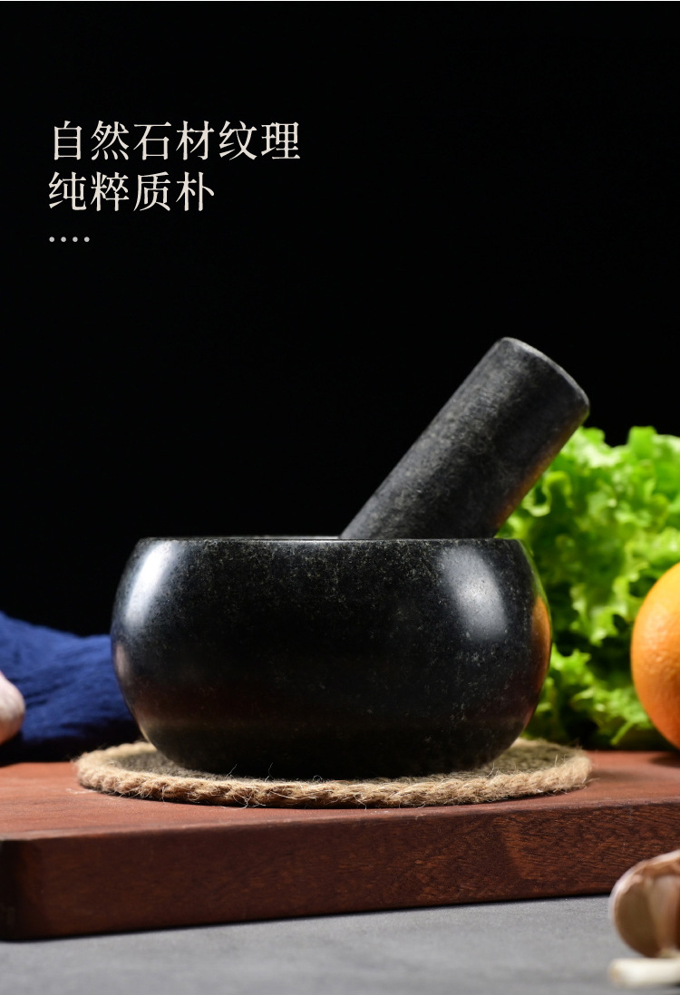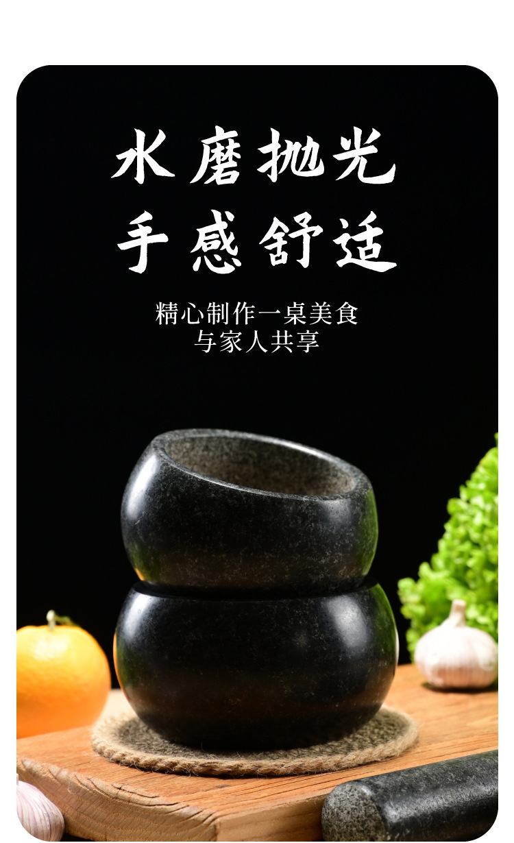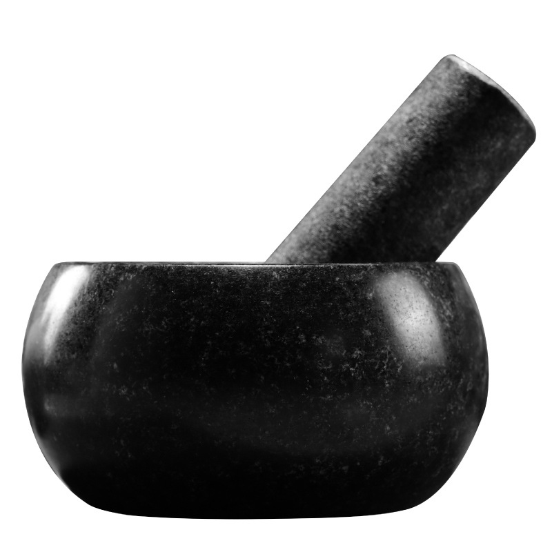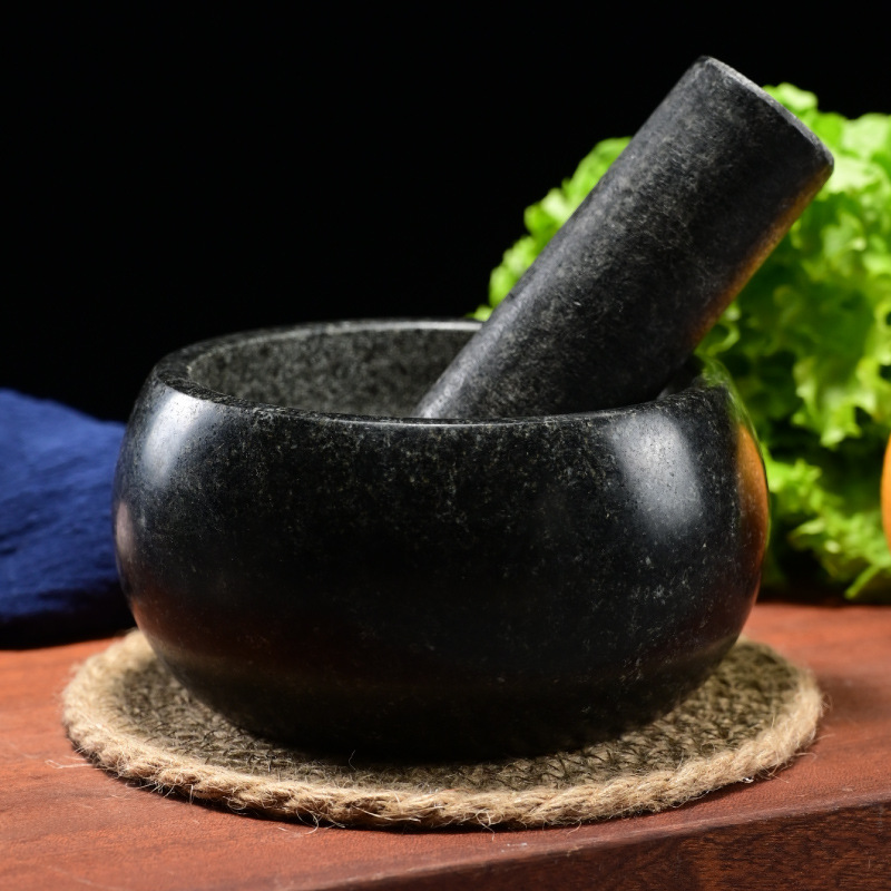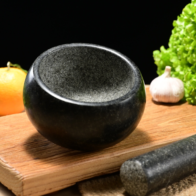 black stone bowl-shaped stone mortar, 16cm in diameter