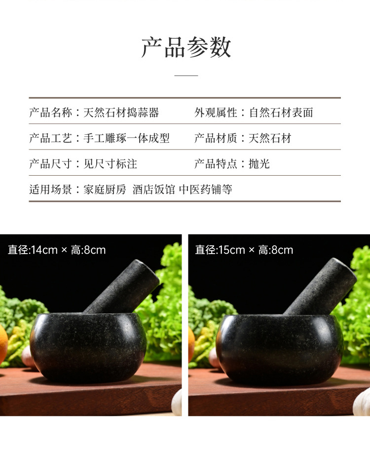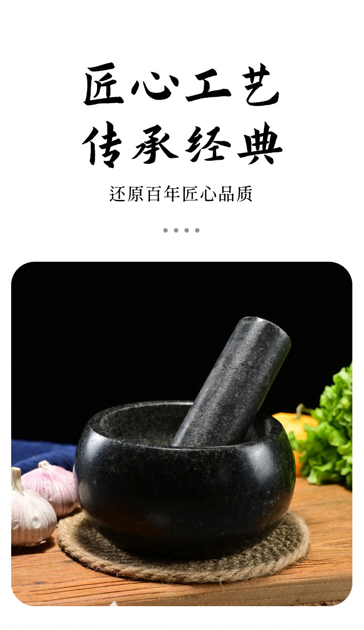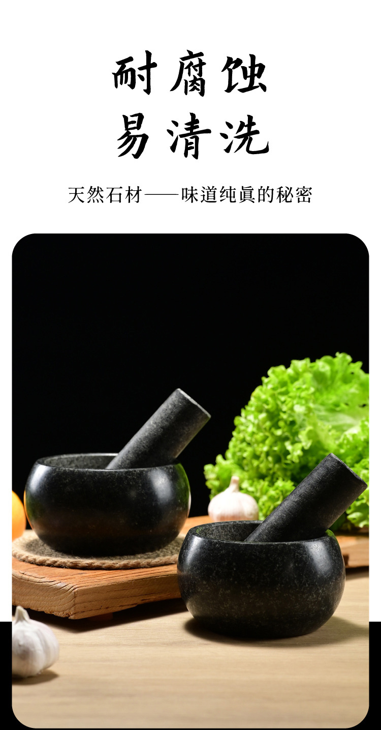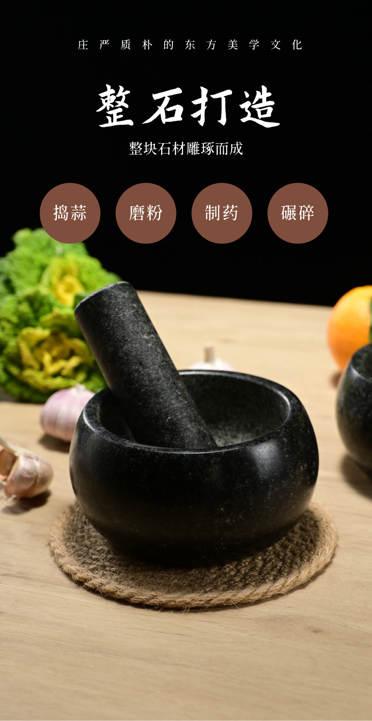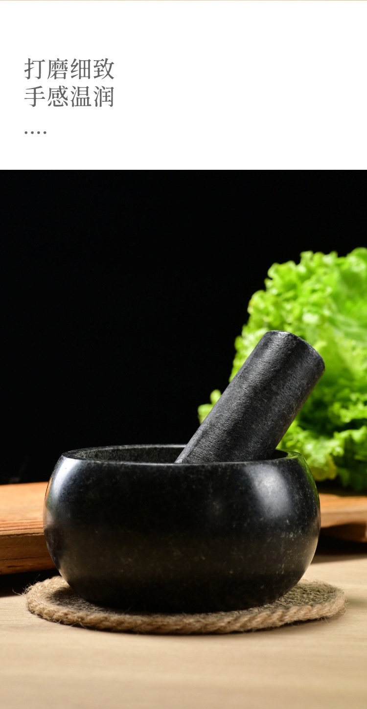 black stone bowl-shaped stone mortar, 16cm in diameter