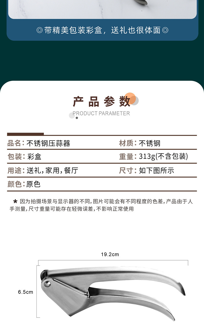 specifications: [304 sanding] garlic press