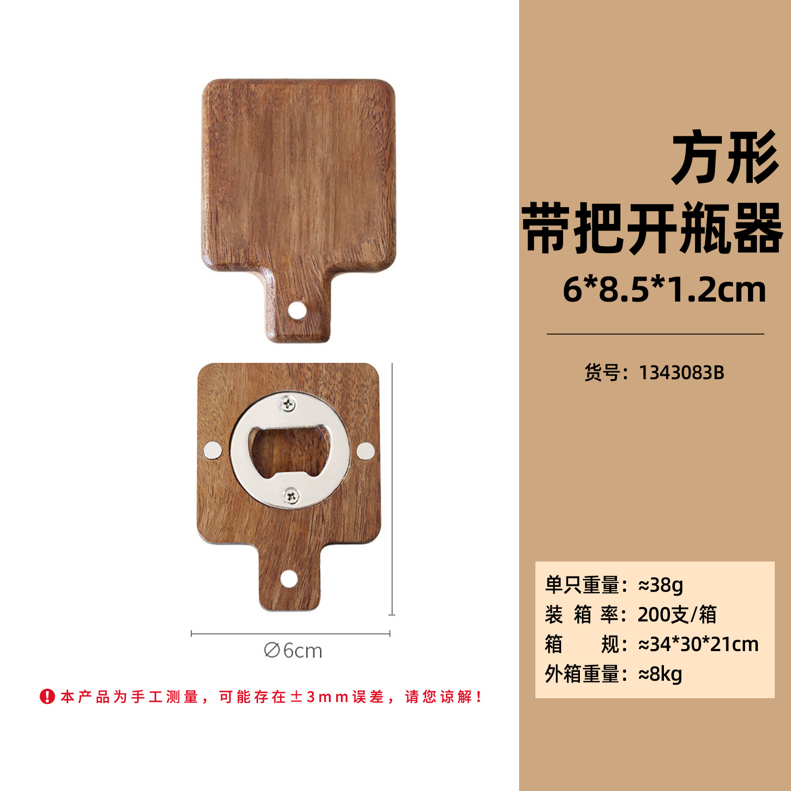 no logo-acacia mangium square bottle opener with handle