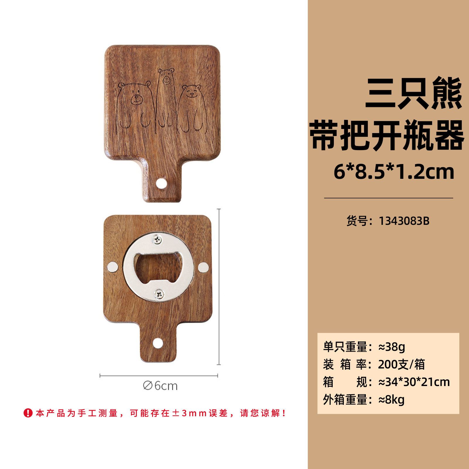 three bears-acacia mangium square bottle opener with handle