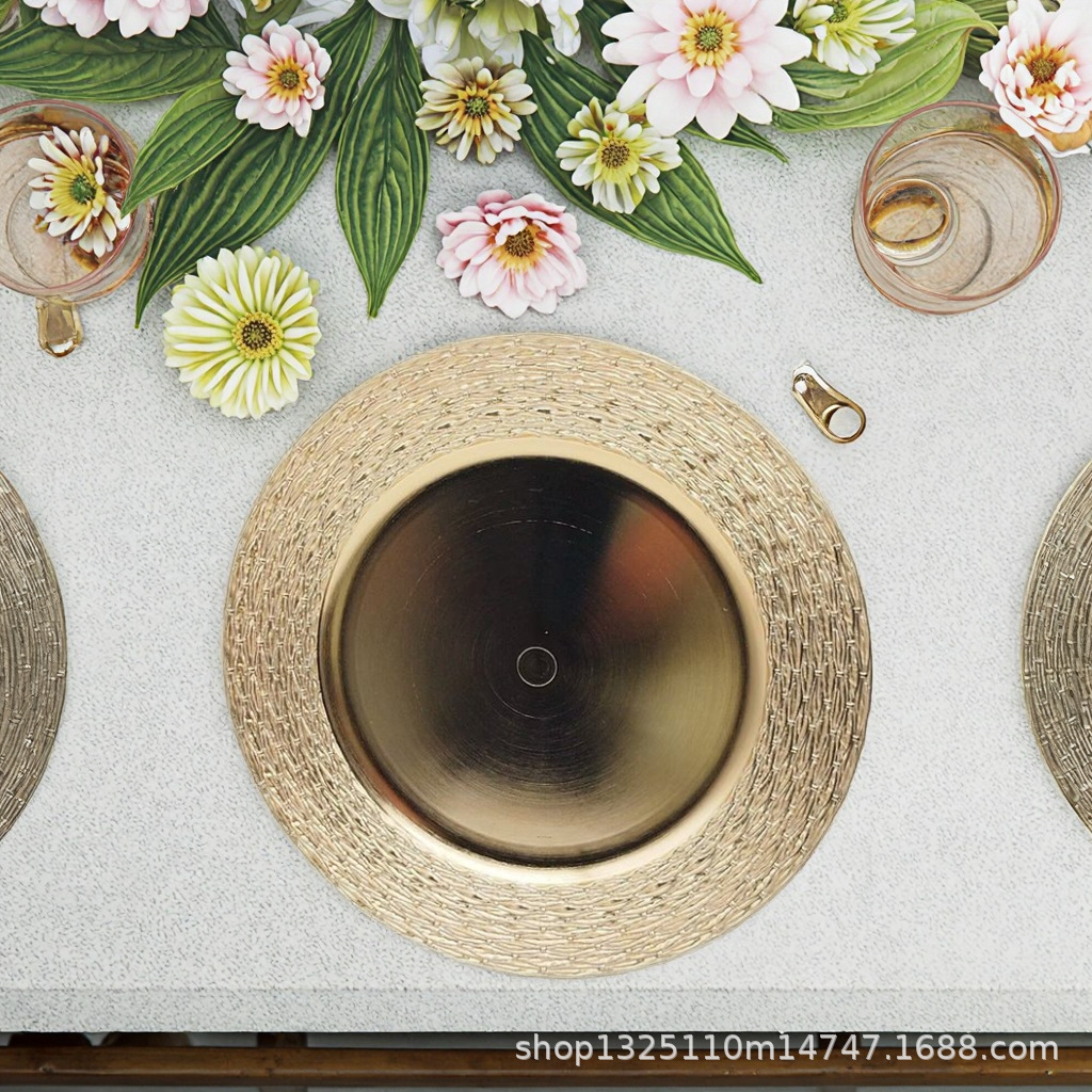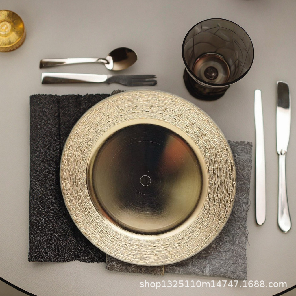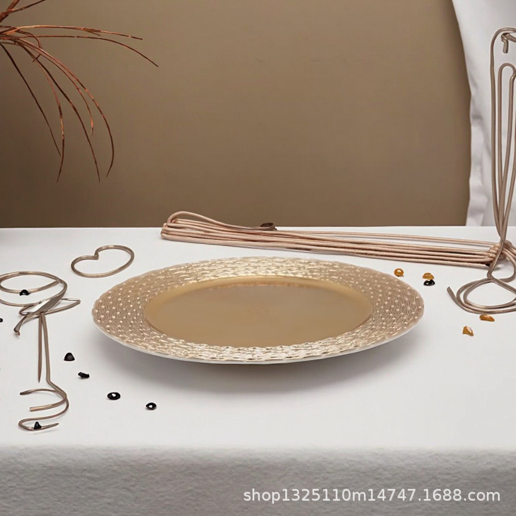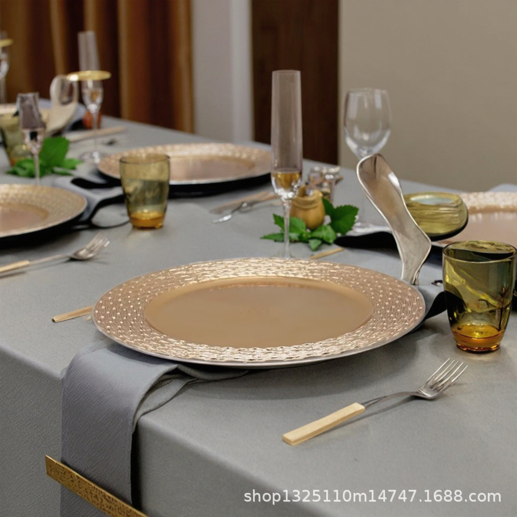 new european-style electroplated round plate hotel wedding birthday party tray stationery bag craft plate direct manufacturer