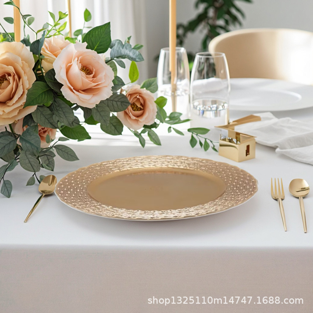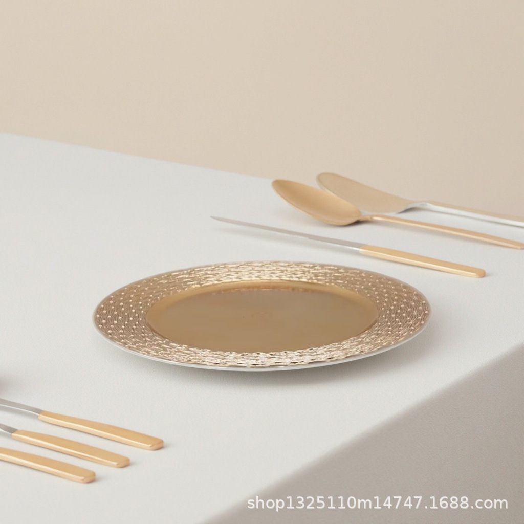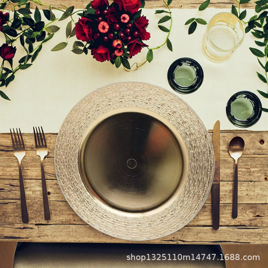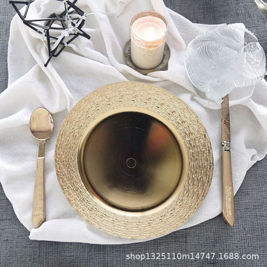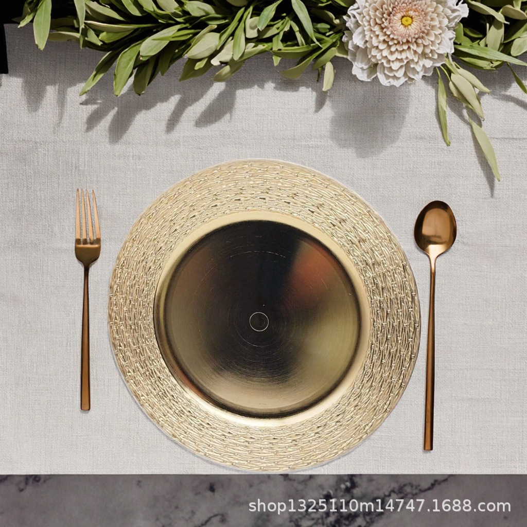 new european-style electroplated round plate hotel wedding birthday party tray stationery bag craft plate direct manufacturer