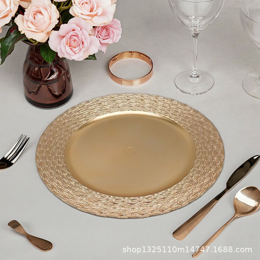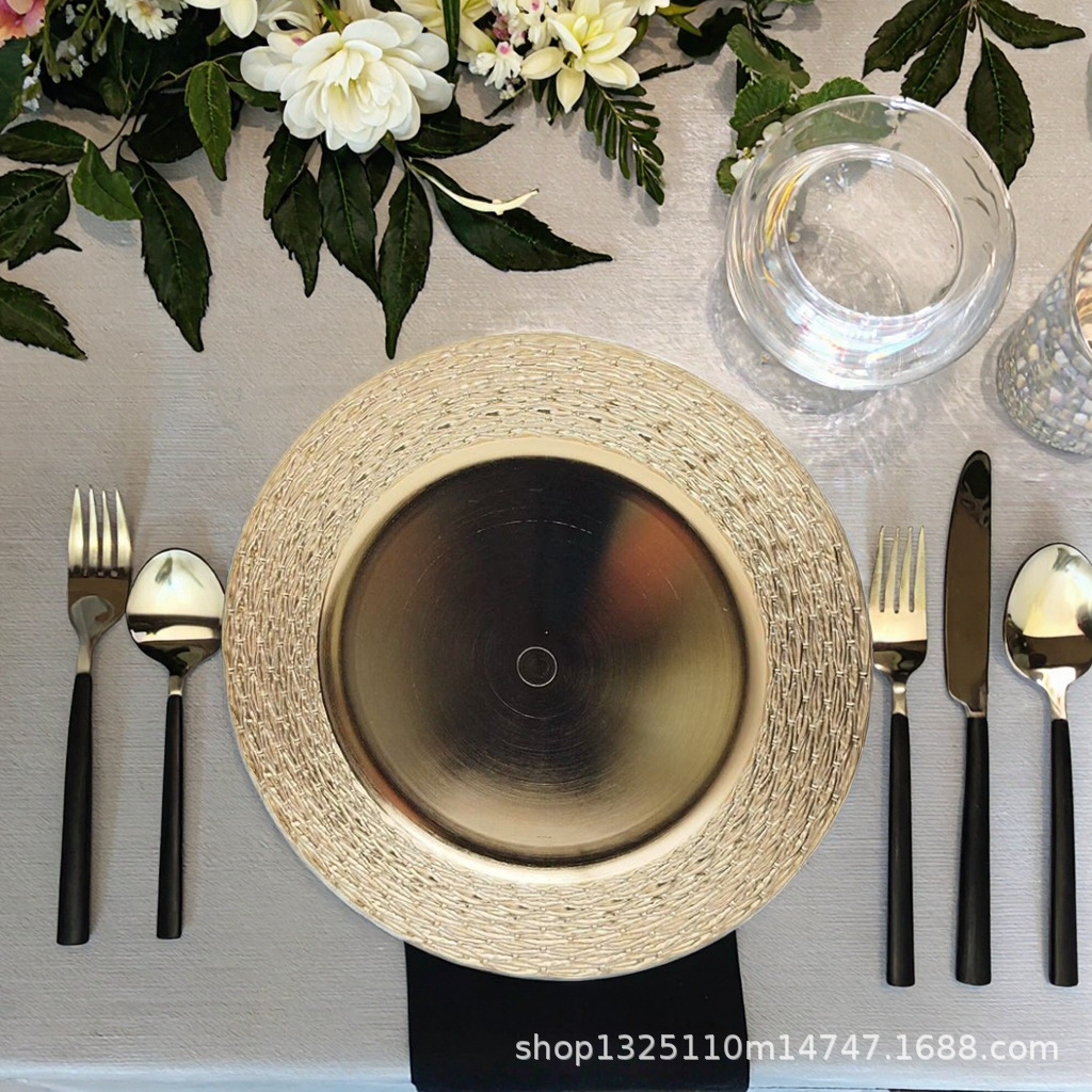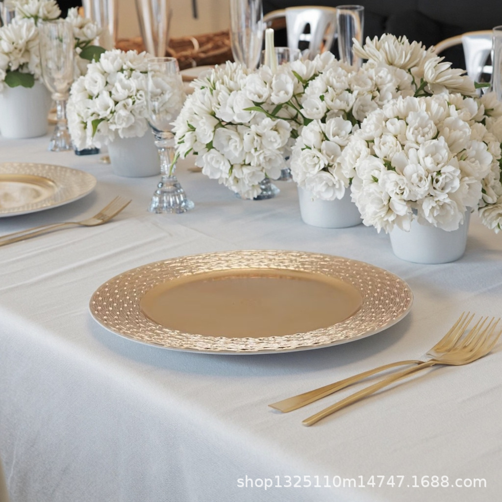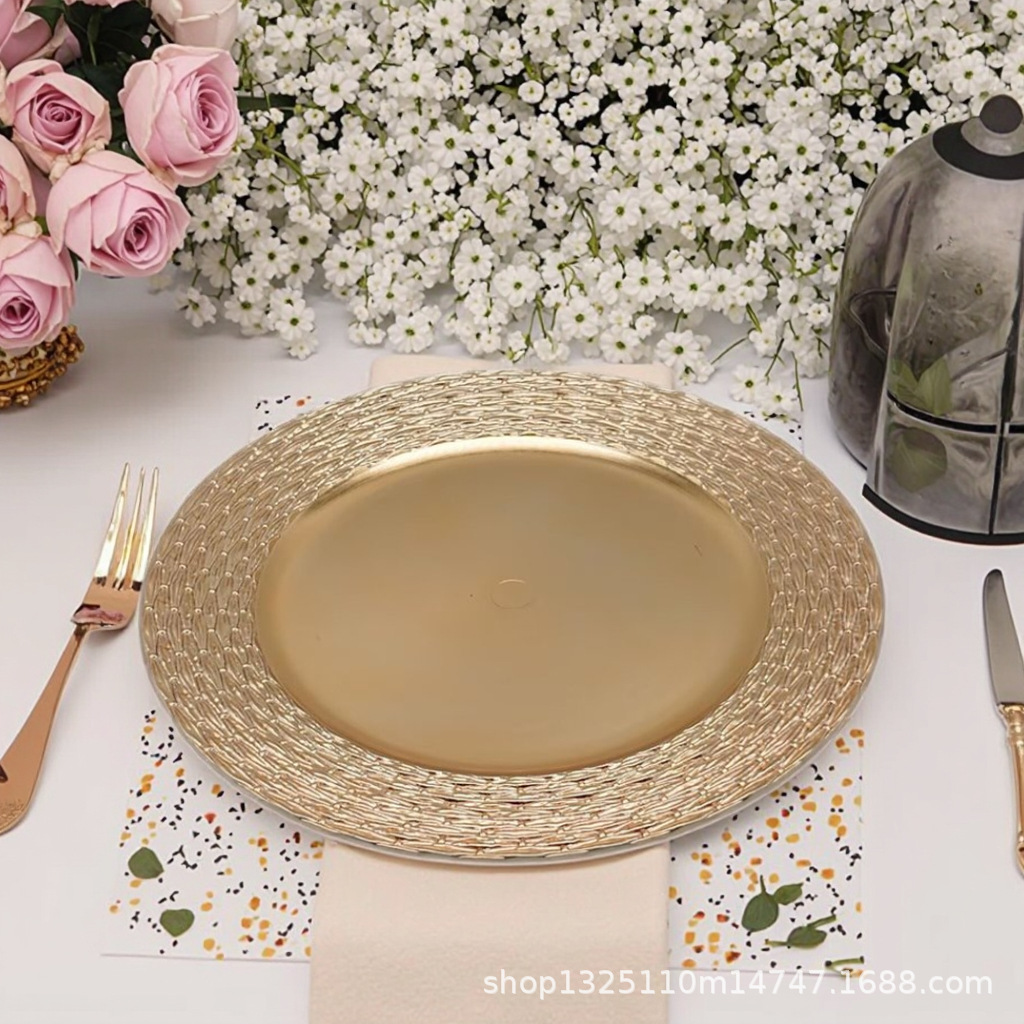 new european-style electroplated round plate hotel wedding birthday party tray stationery bag craft plate direct manufacturer