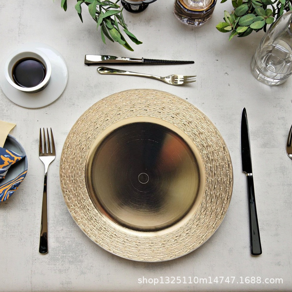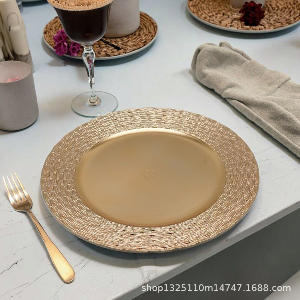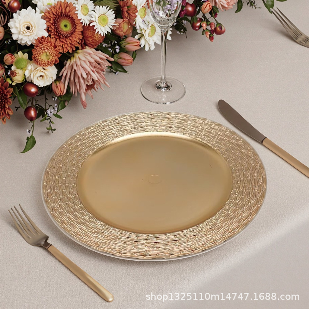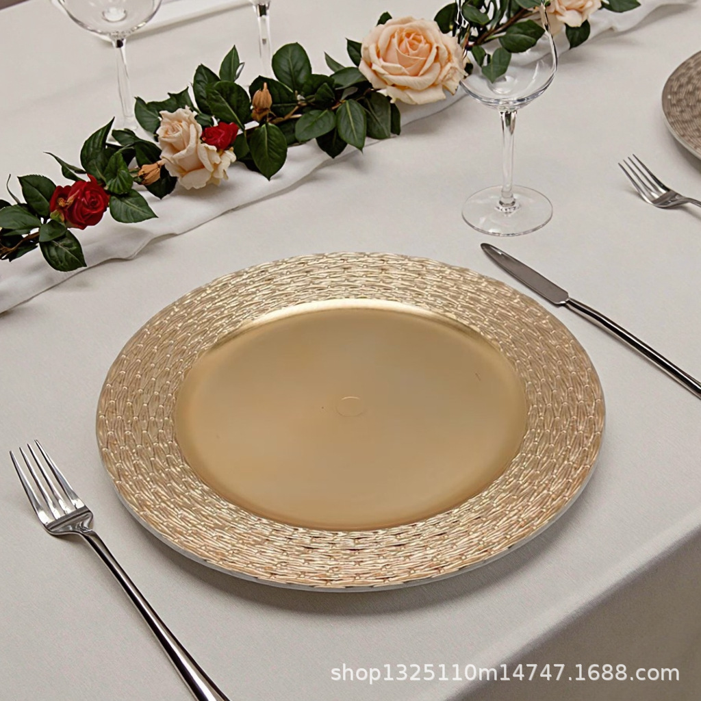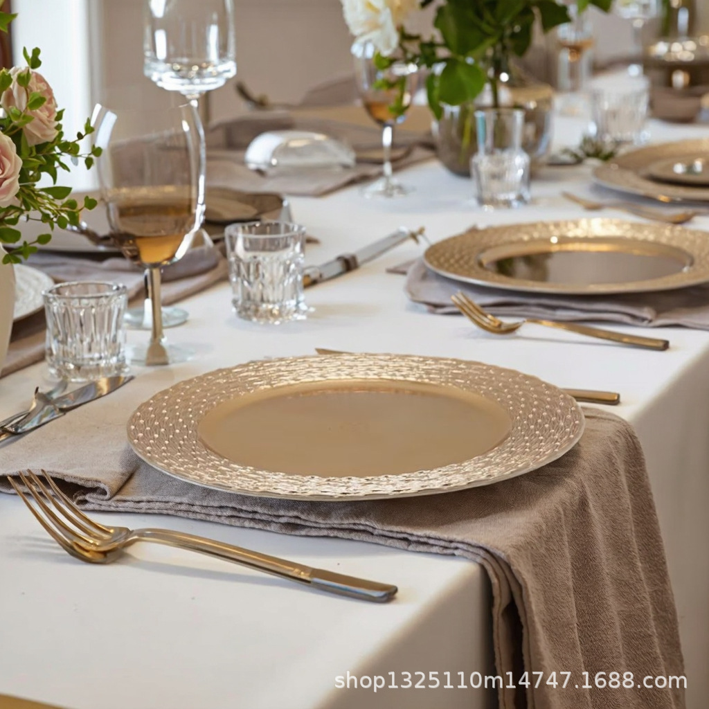 new european-style electroplated round plate hotel wedding birthday party tray stationery bag craft plate direct manufacturer