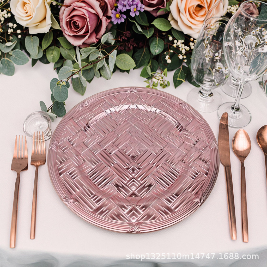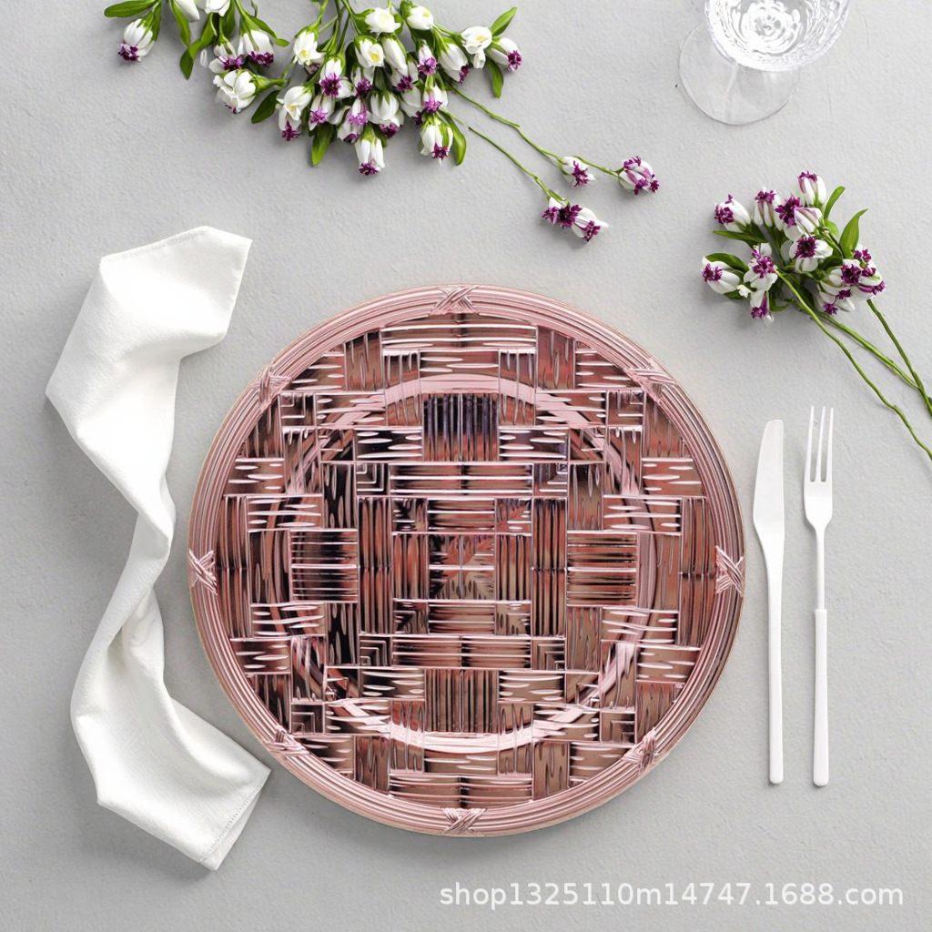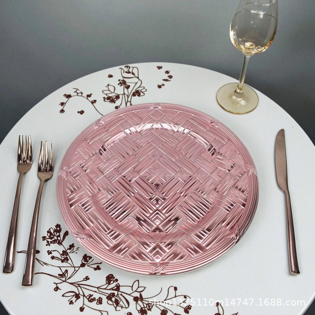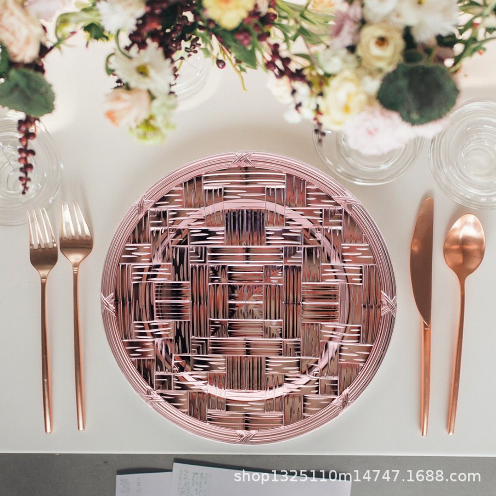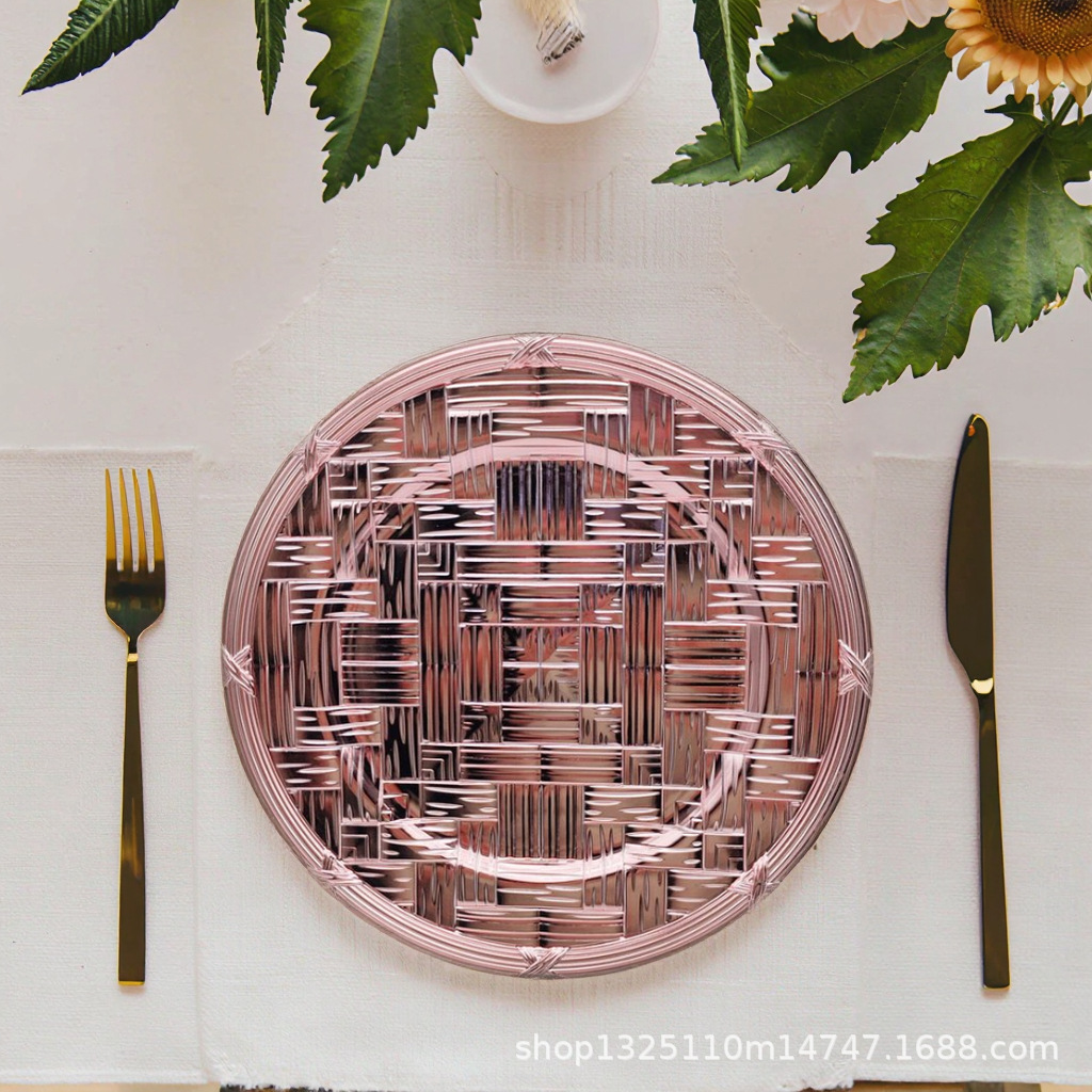 new european-style electroplated round plate hotel wedding birthday party tray stationery bag craft plate direct manufacturer