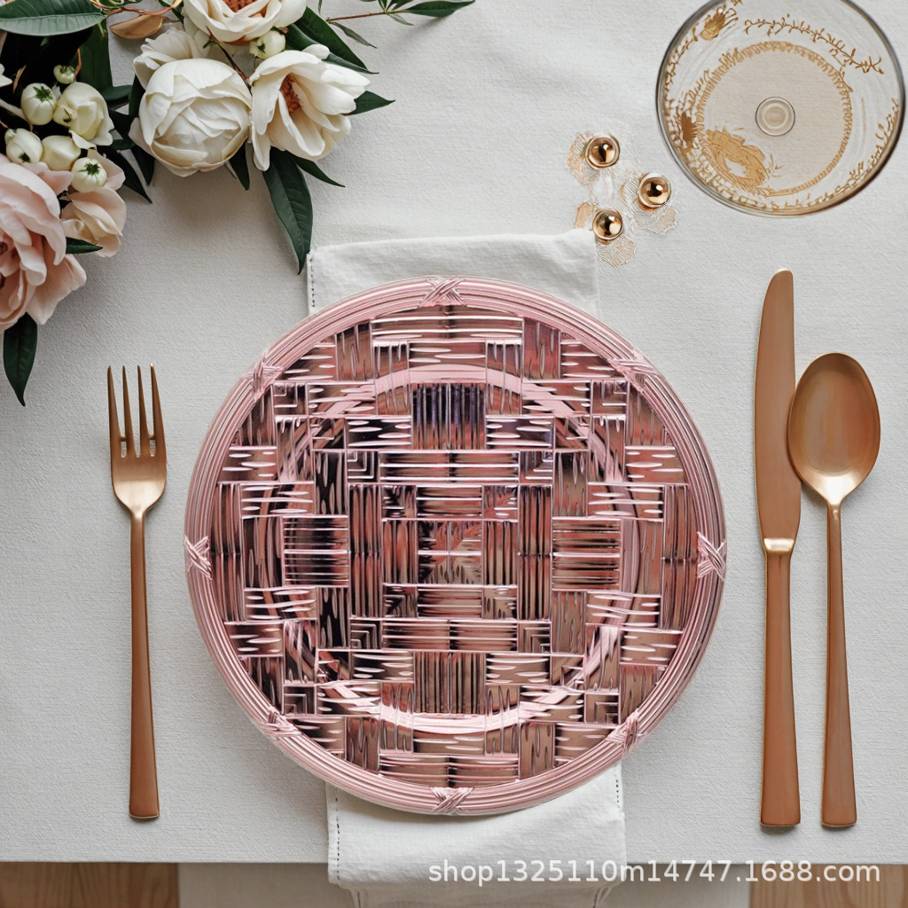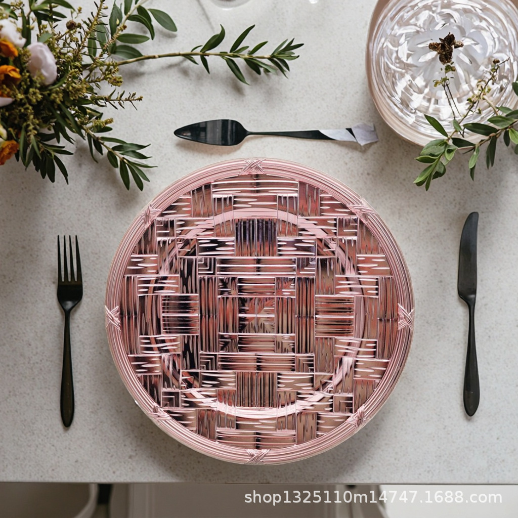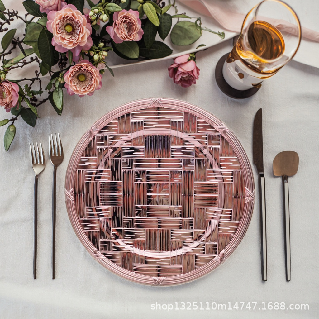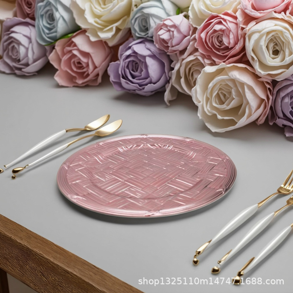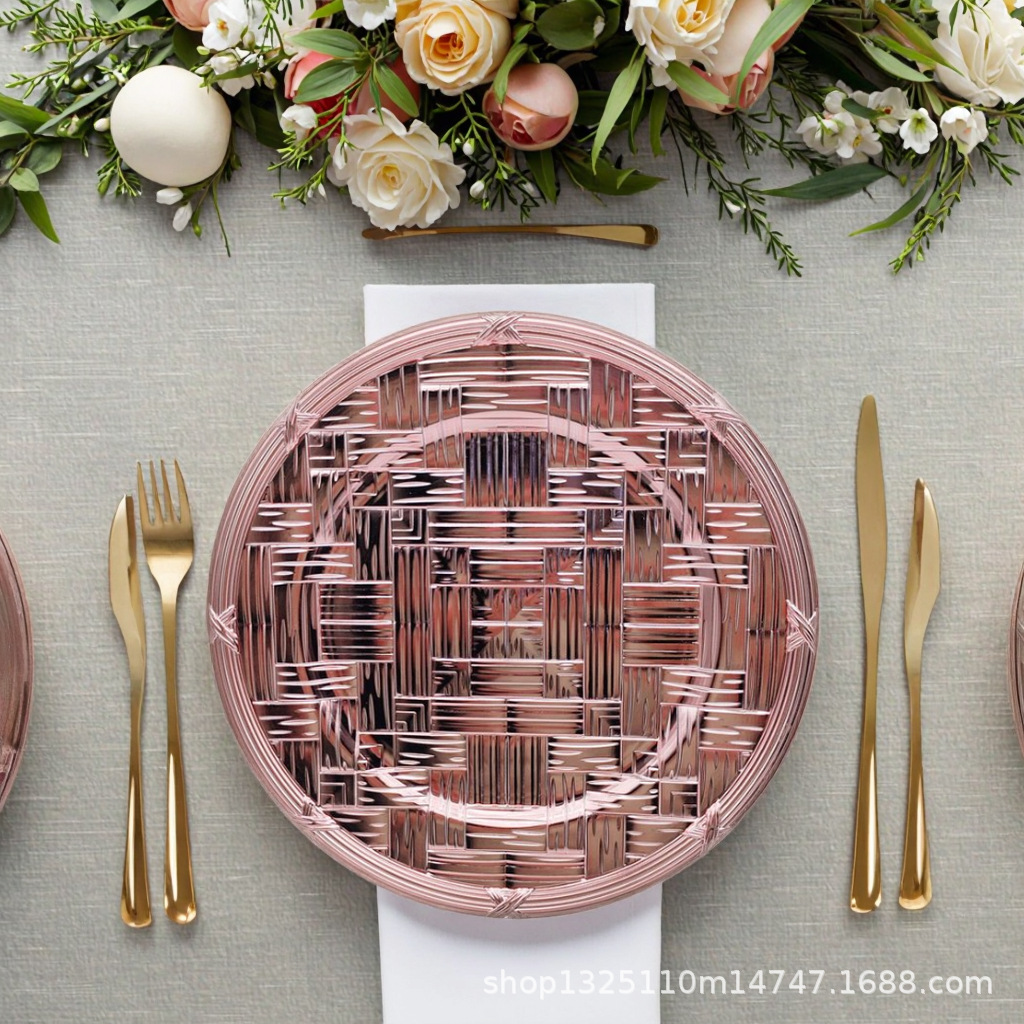 new european-style electroplated round plate hotel wedding birthday party tray stationery bag craft plate direct manufacturer