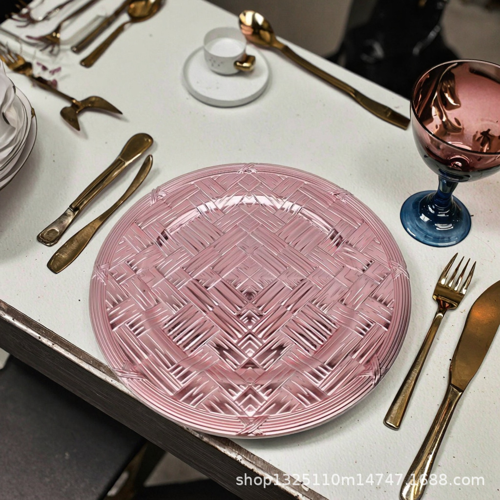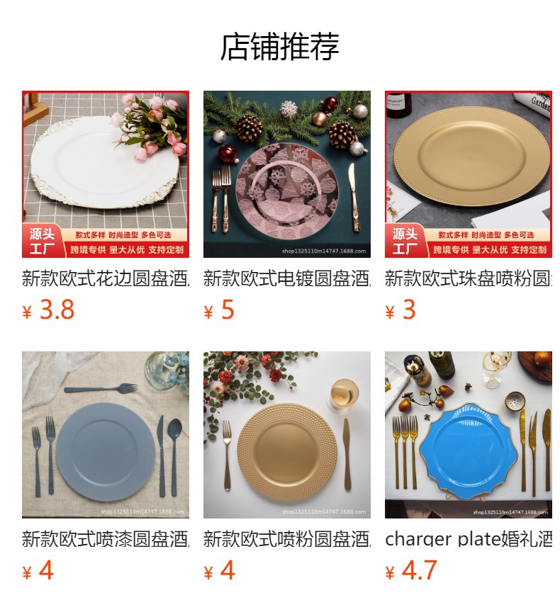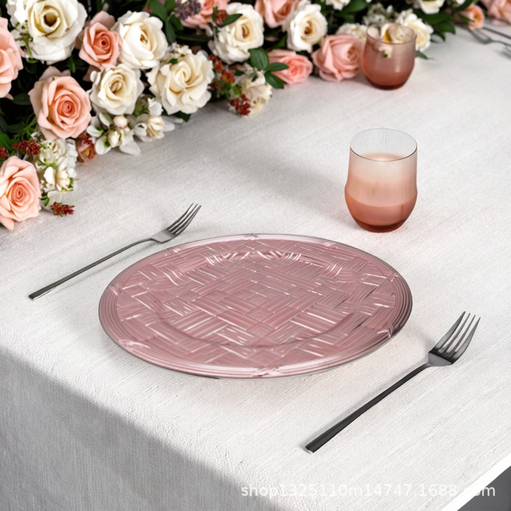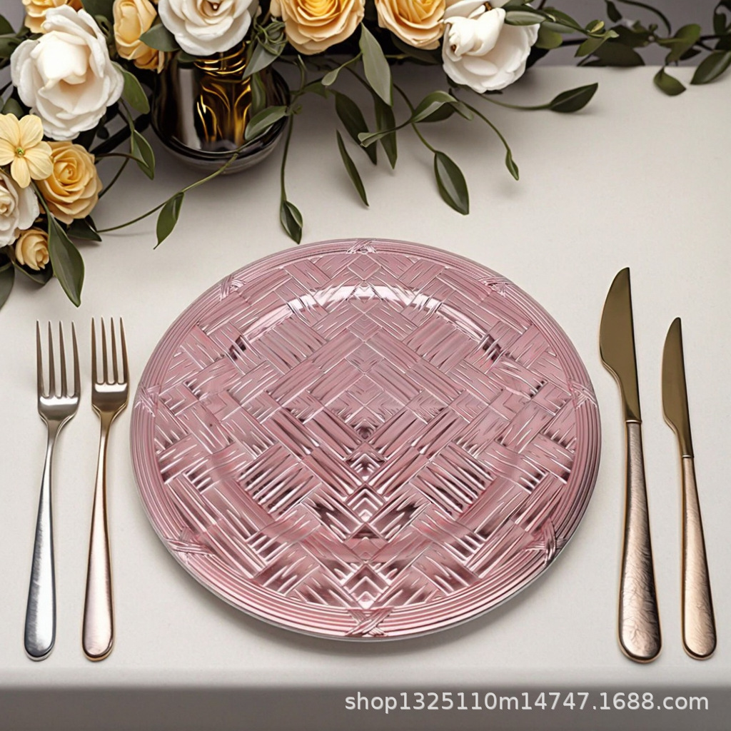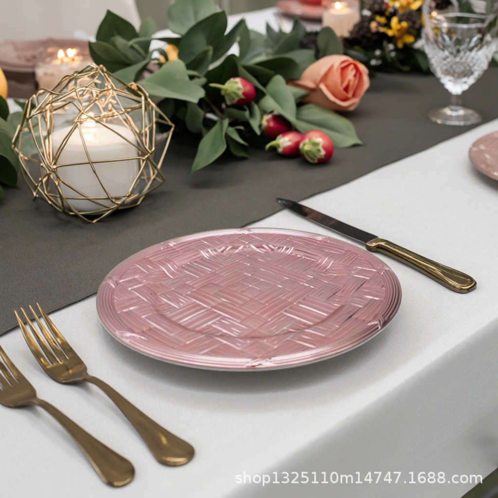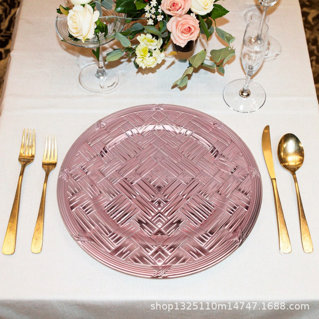 new european-style electroplated round plate hotel wedding birthday party tray stationery bag craft plate direct manufacturer