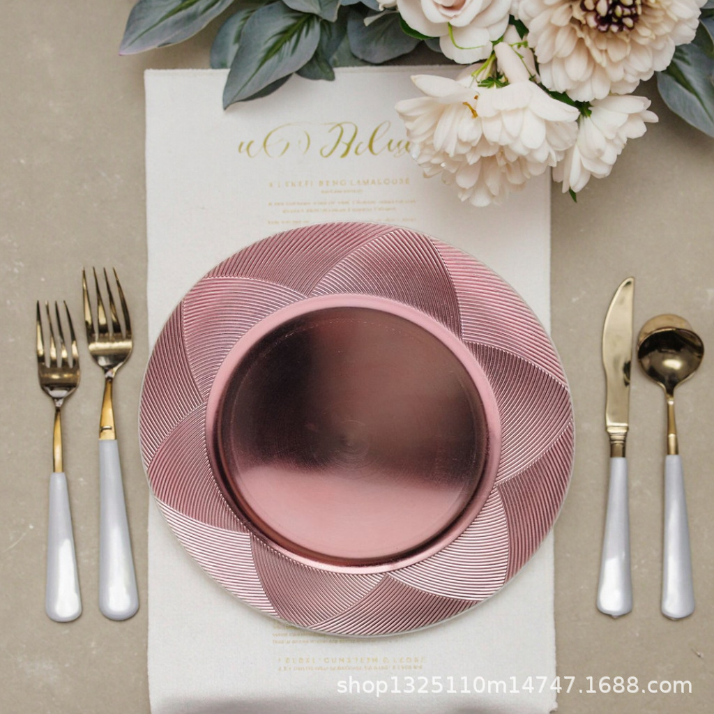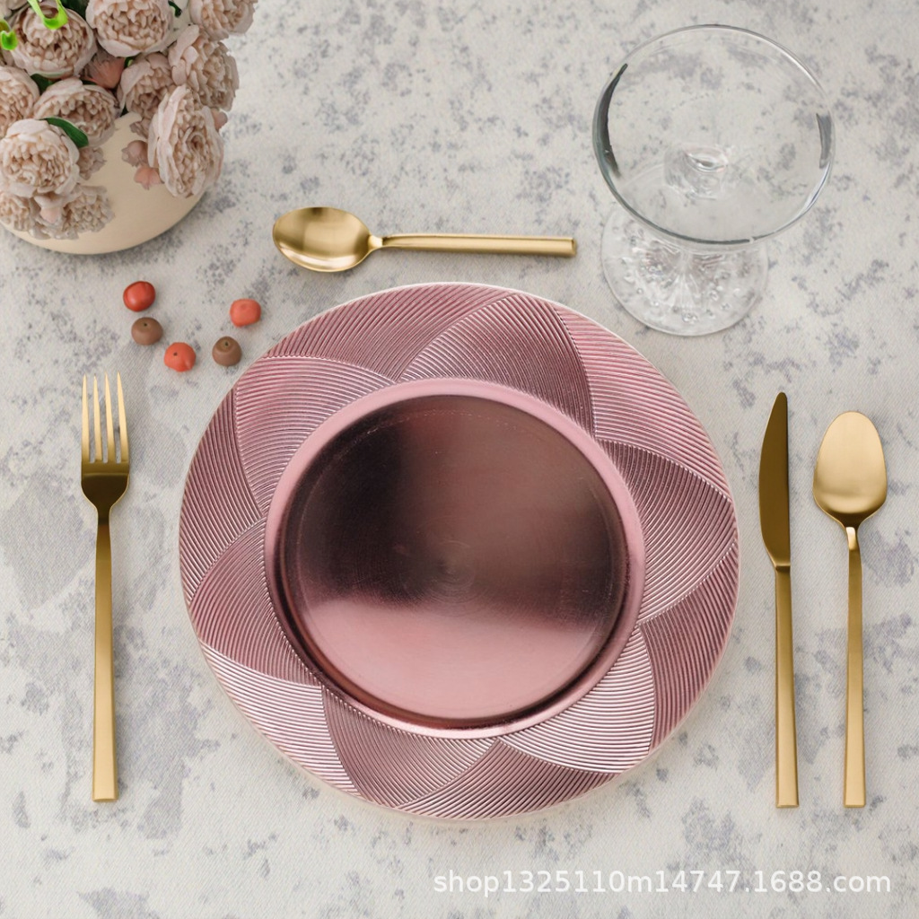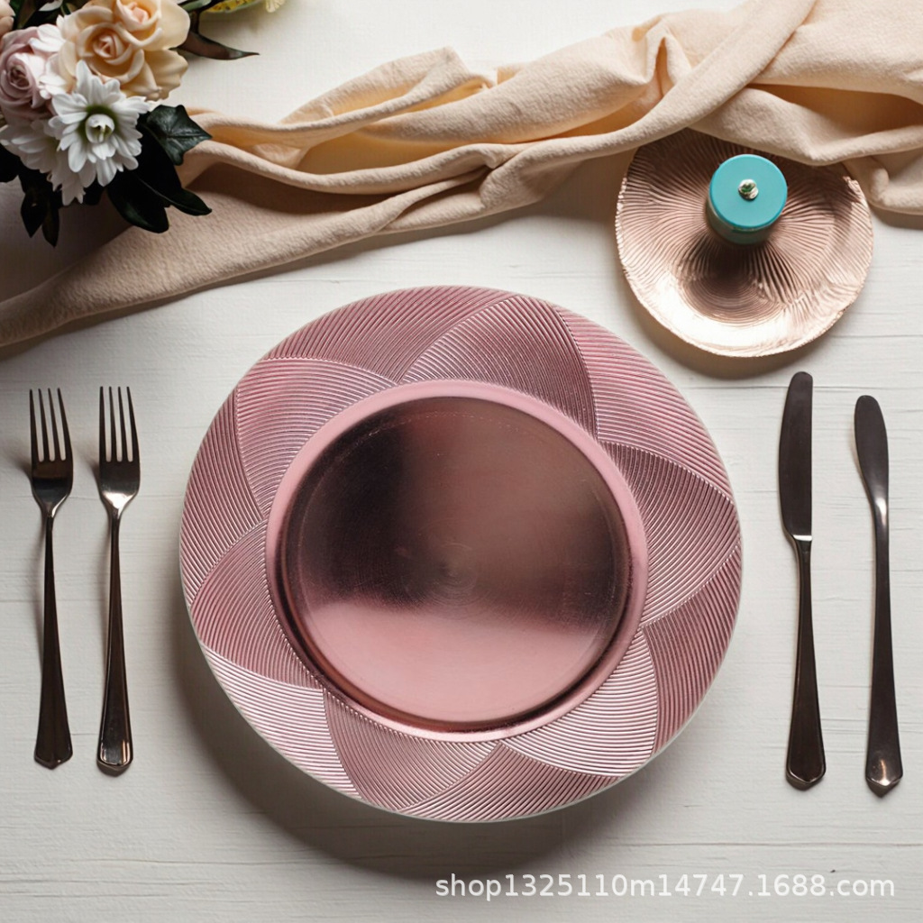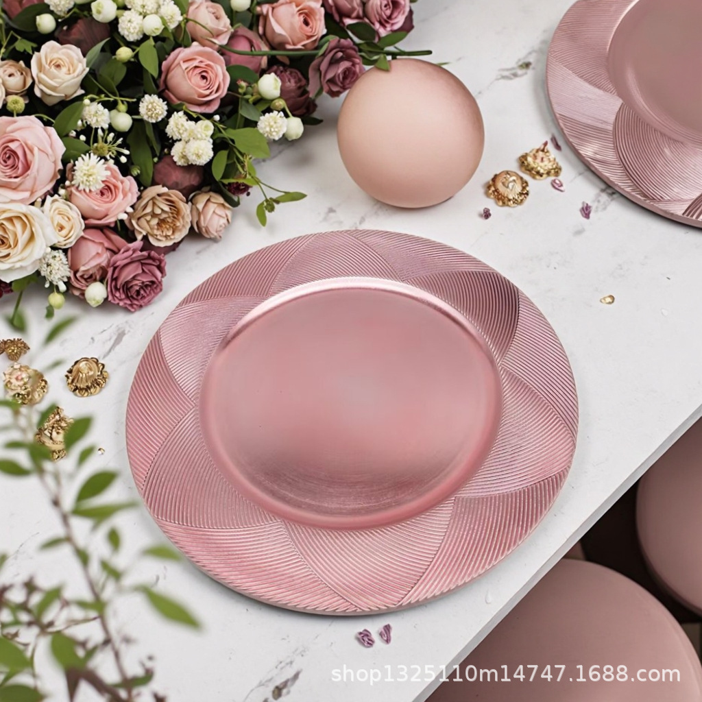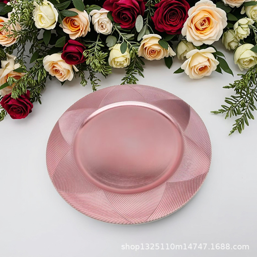 new european-style electroplated round plate hotel wedding birthday party tray stationery bag craft plate direct manufacturer