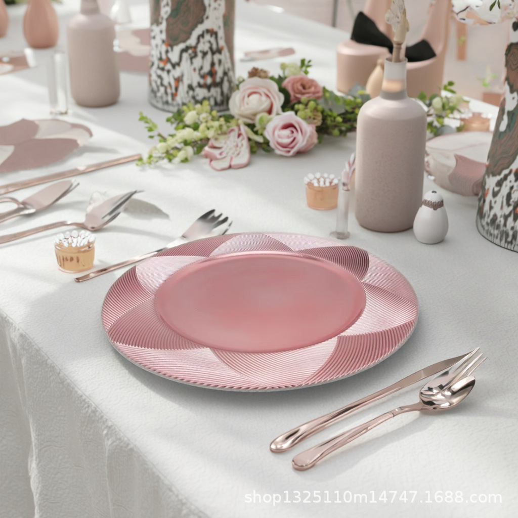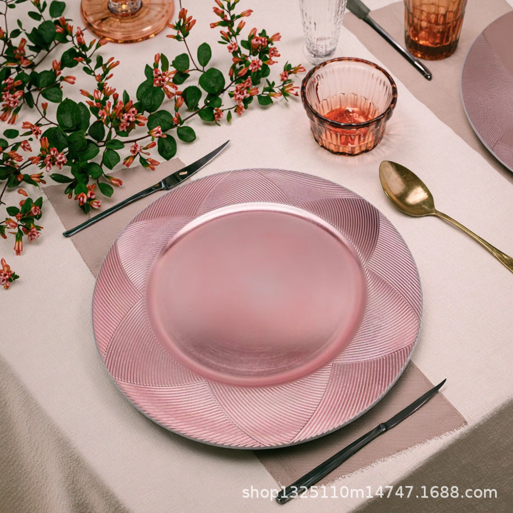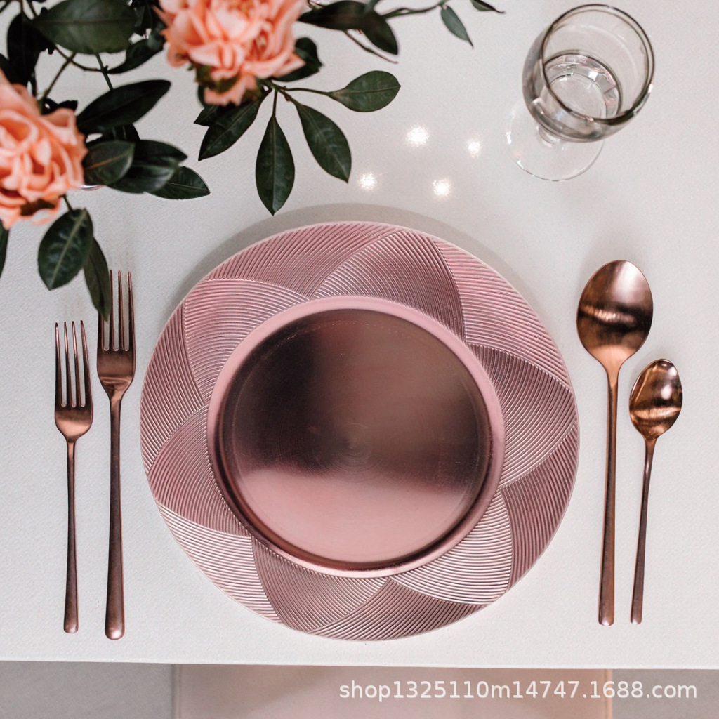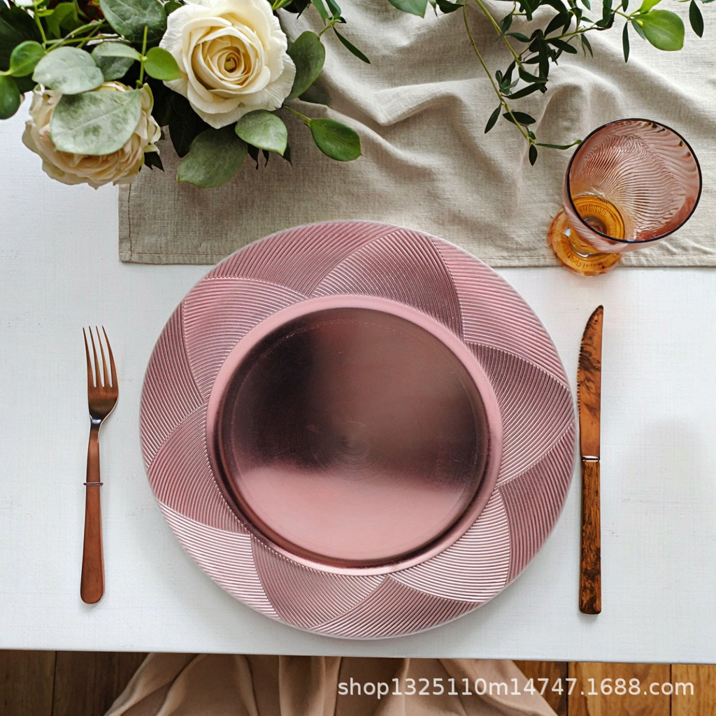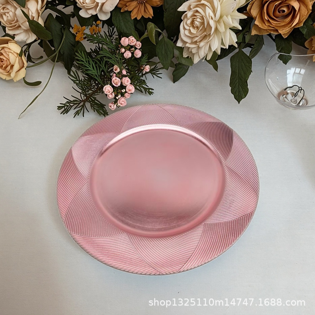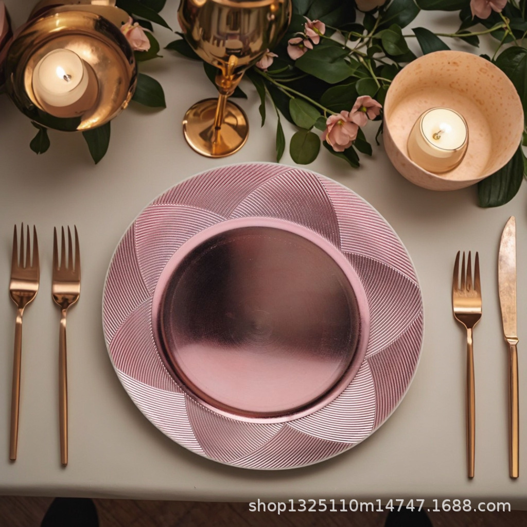 new european-style electroplated round plate hotel wedding birthday party tray stationery bag craft plate direct manufacturer