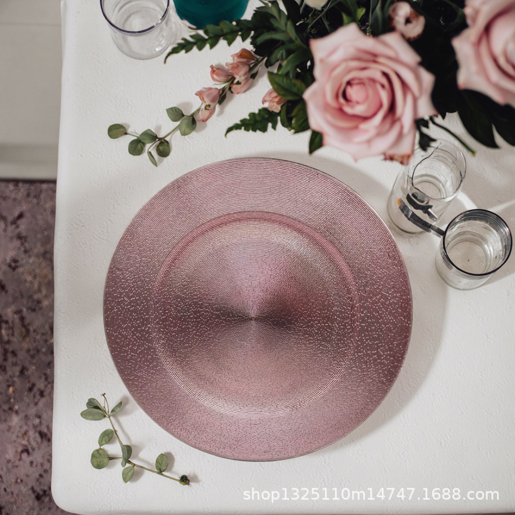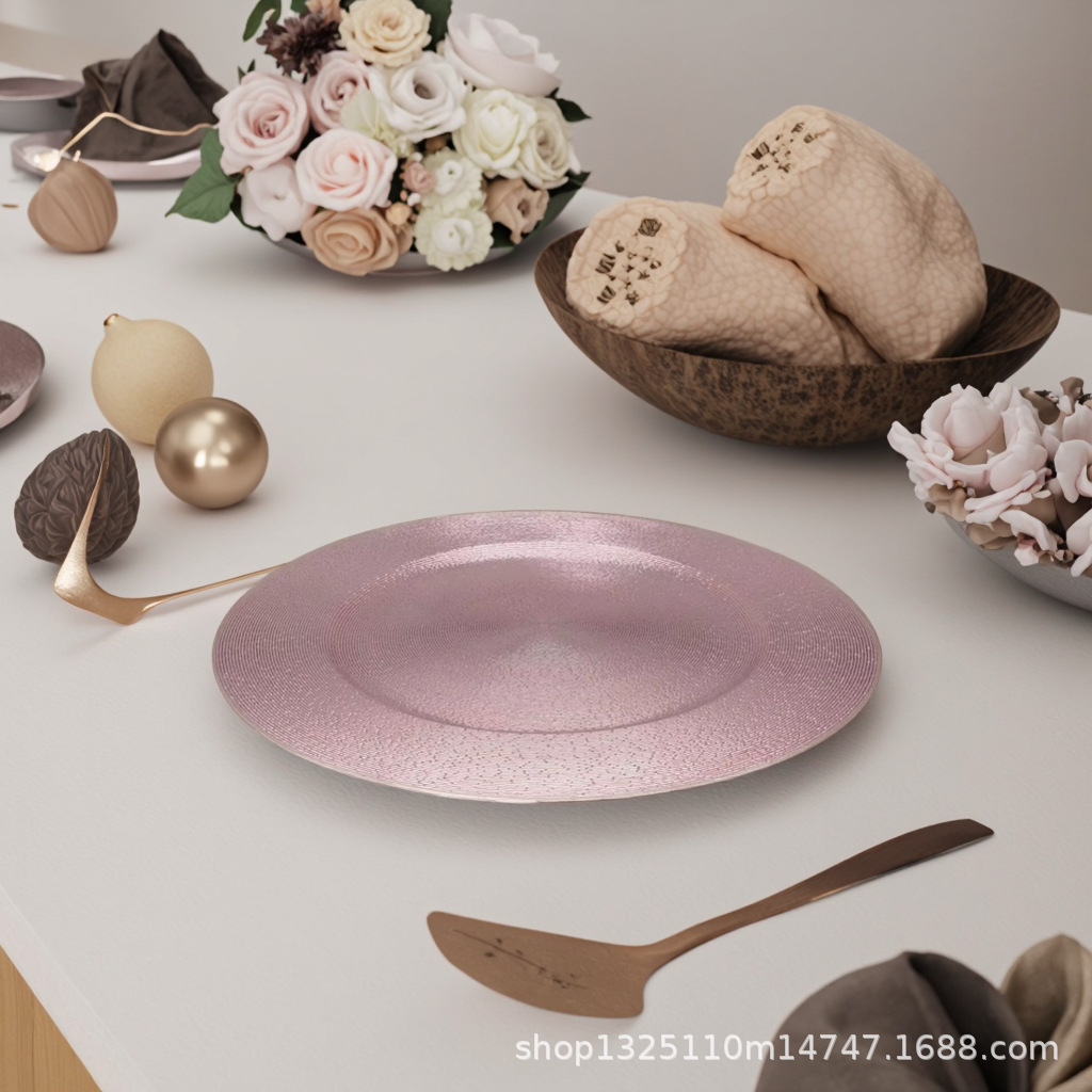 new european-style electroplated round plate hotel wedding birthday party tray stationery bag craft plate direct manufacturer