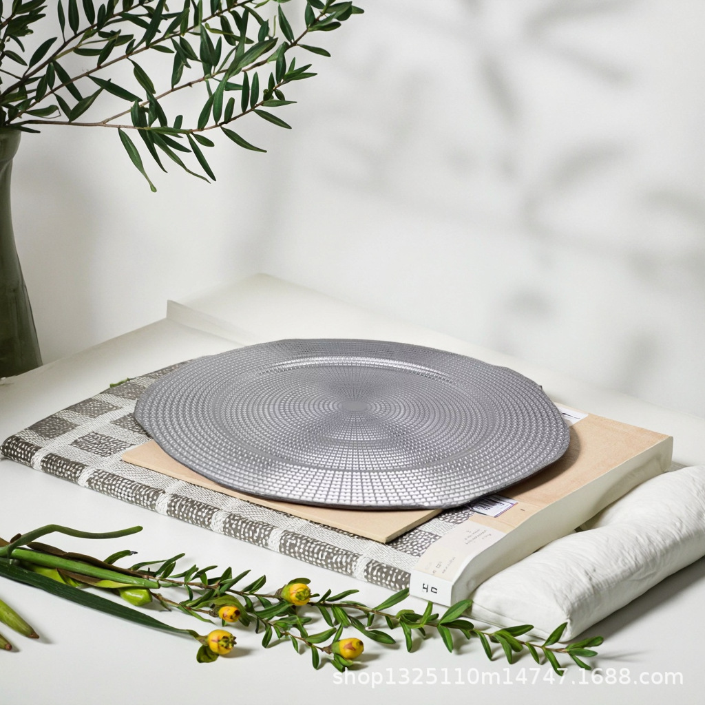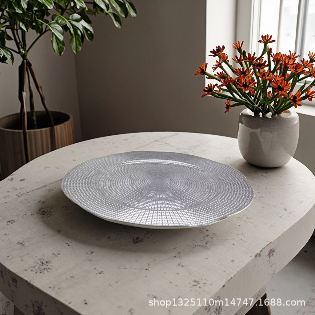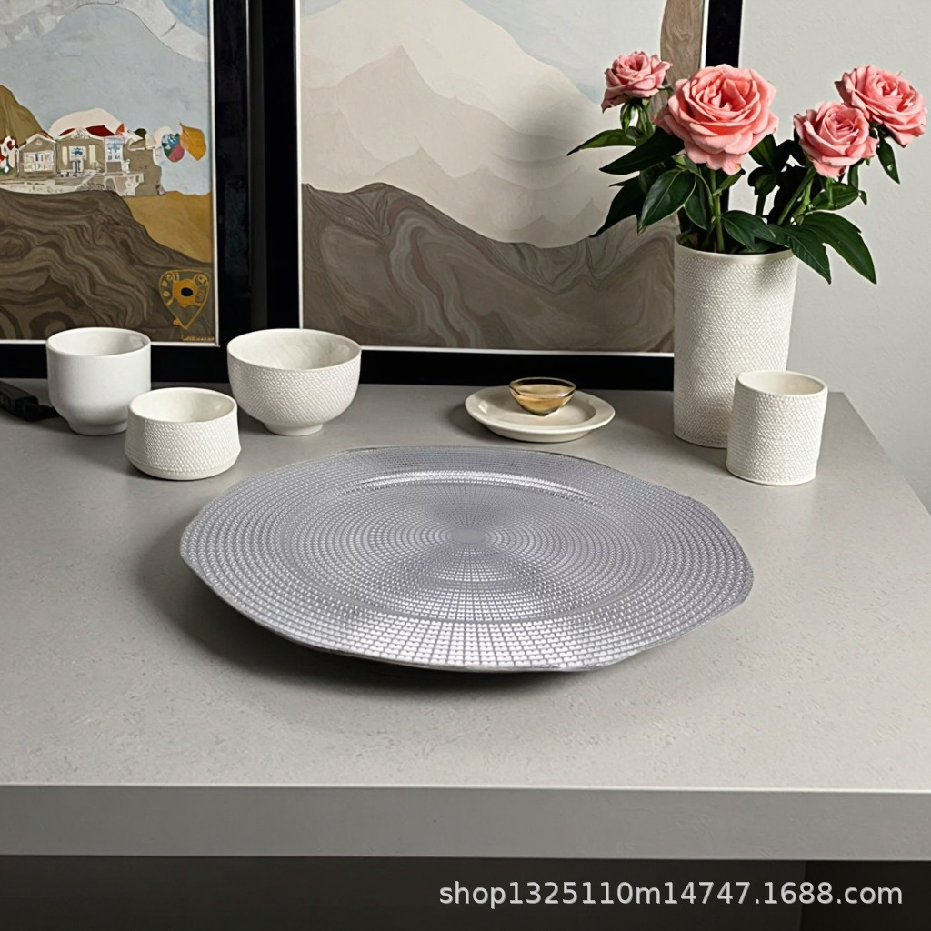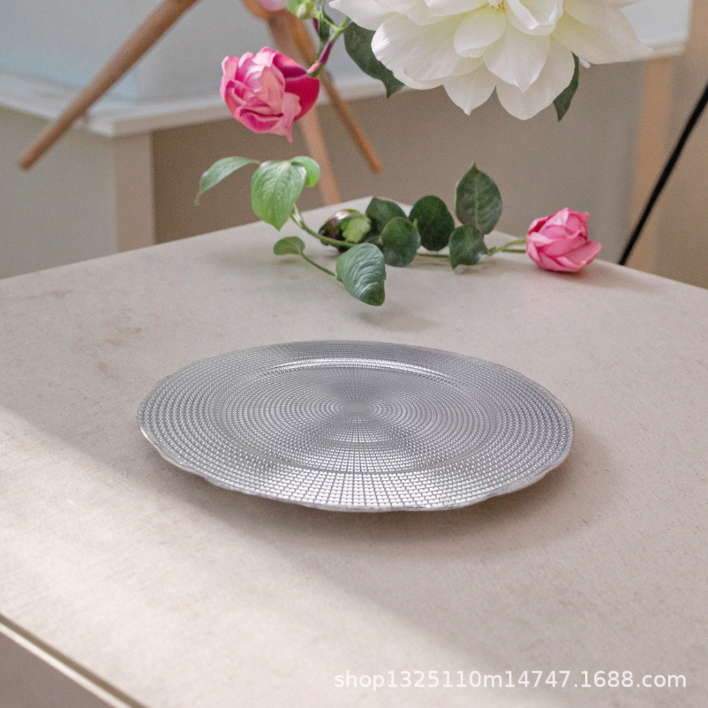 new european-style electroplated round plate hotel wedding birthday party tray stationery bag craft plate direct manufacturer