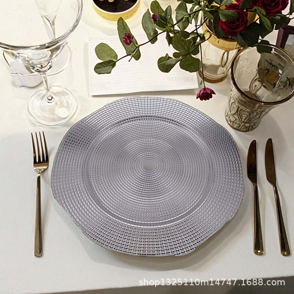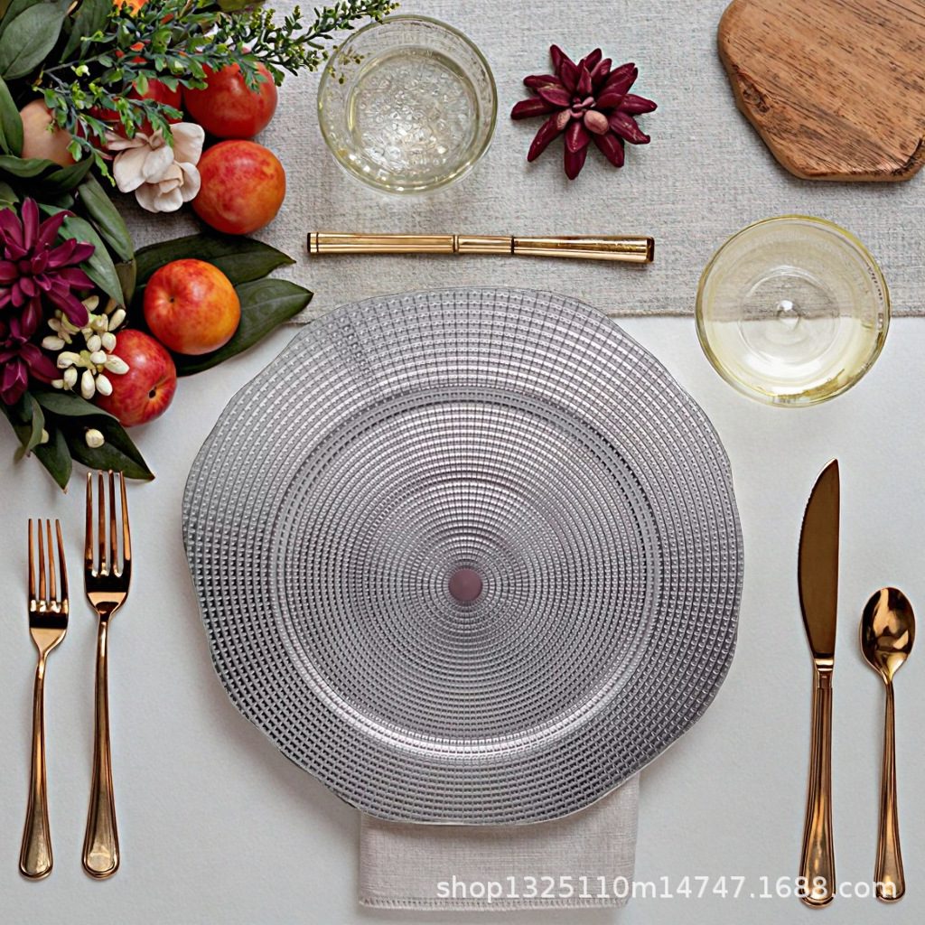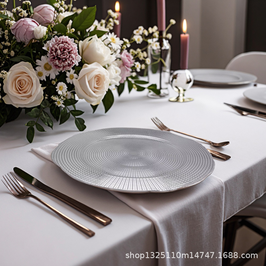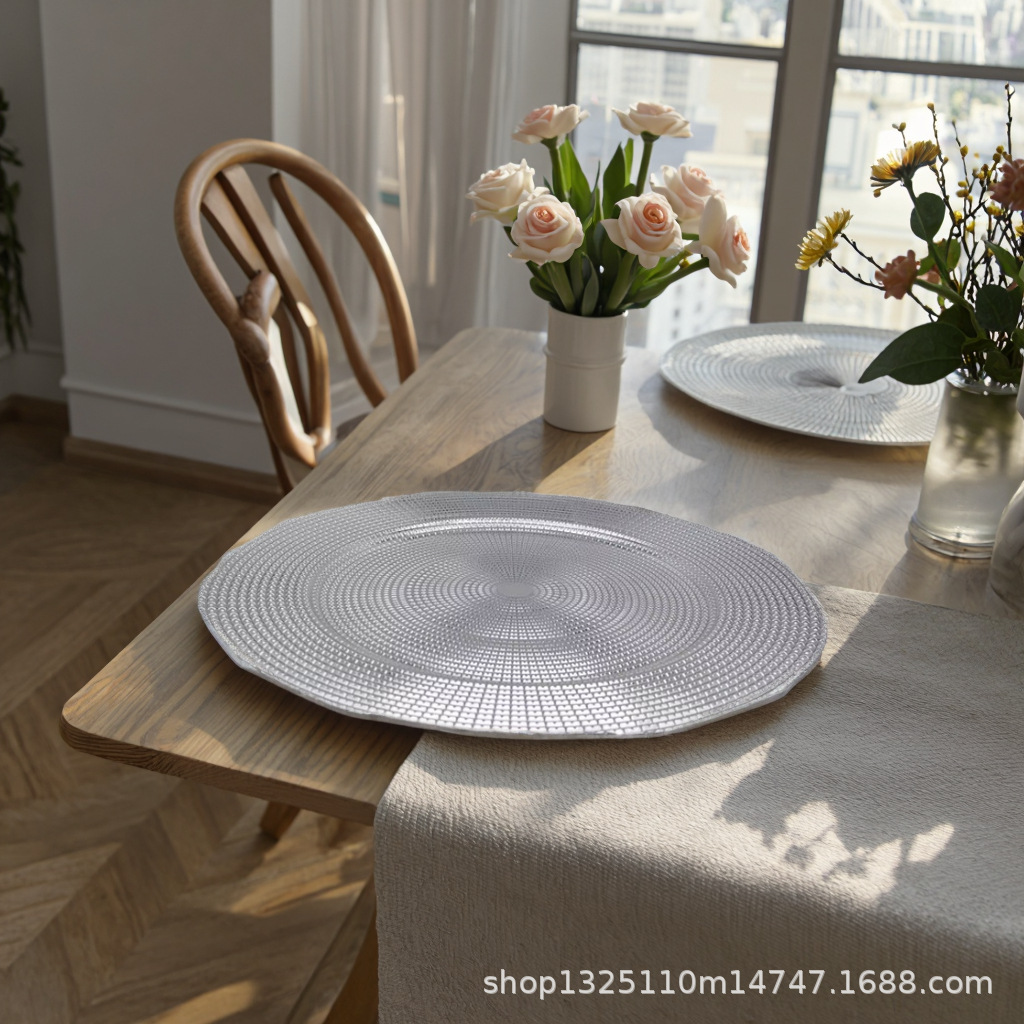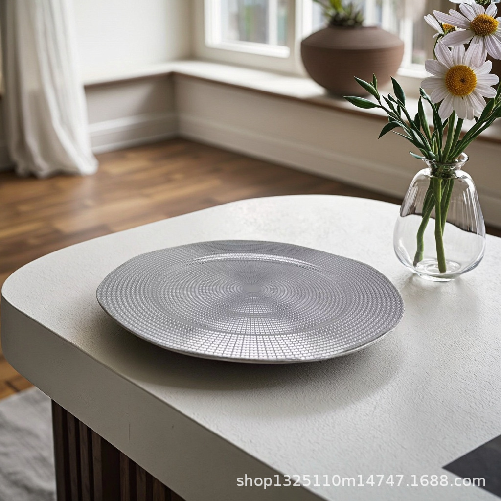 new european-style electroplated round plate hotel wedding birthday party tray stationery bag craft plate direct manufacturer