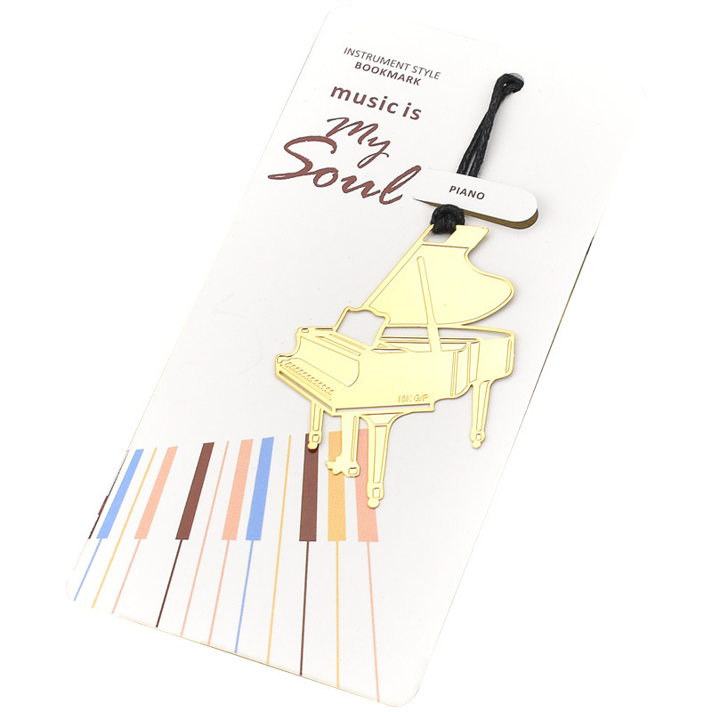 Creative and Elegant Metal-Plated Gold Lanyard Bookmarks with Musical Themes for Literary and Musical Enthusiasts