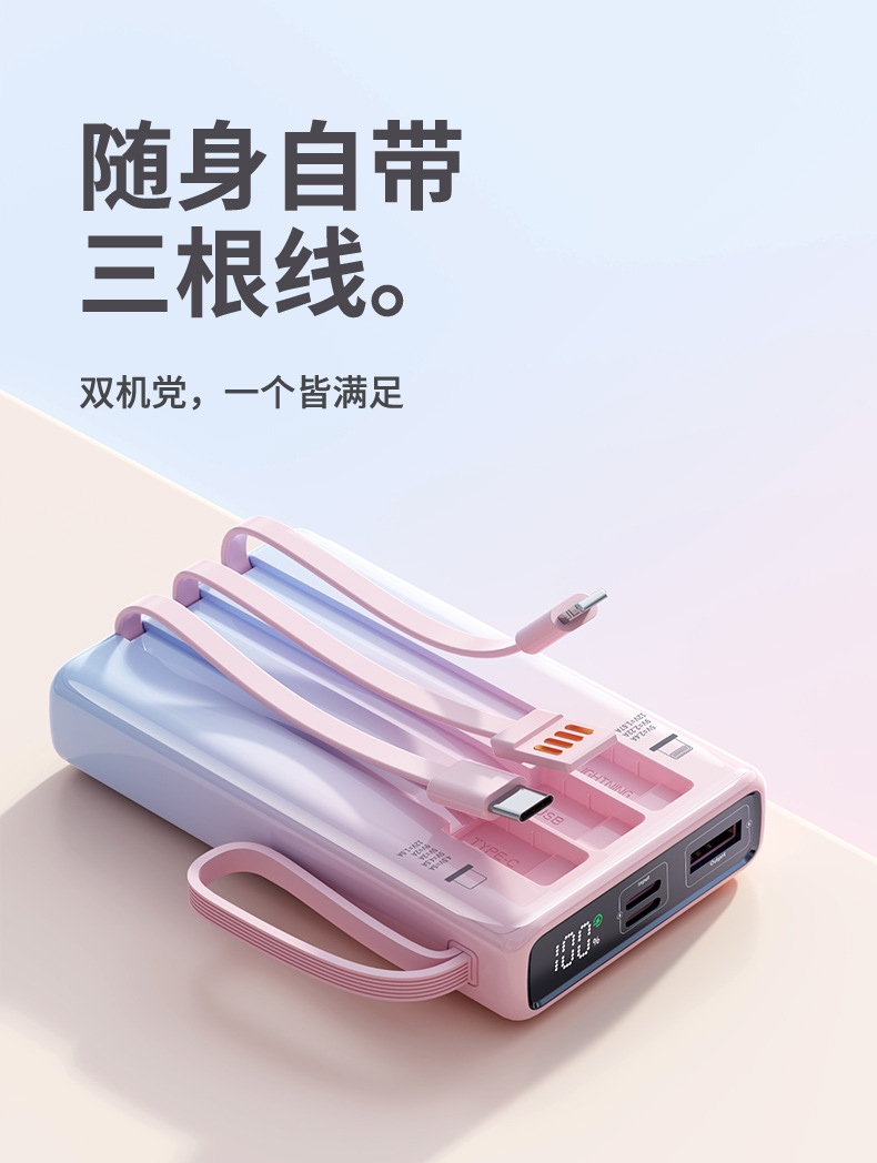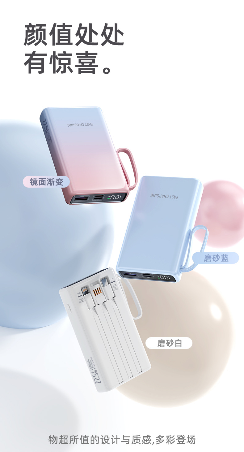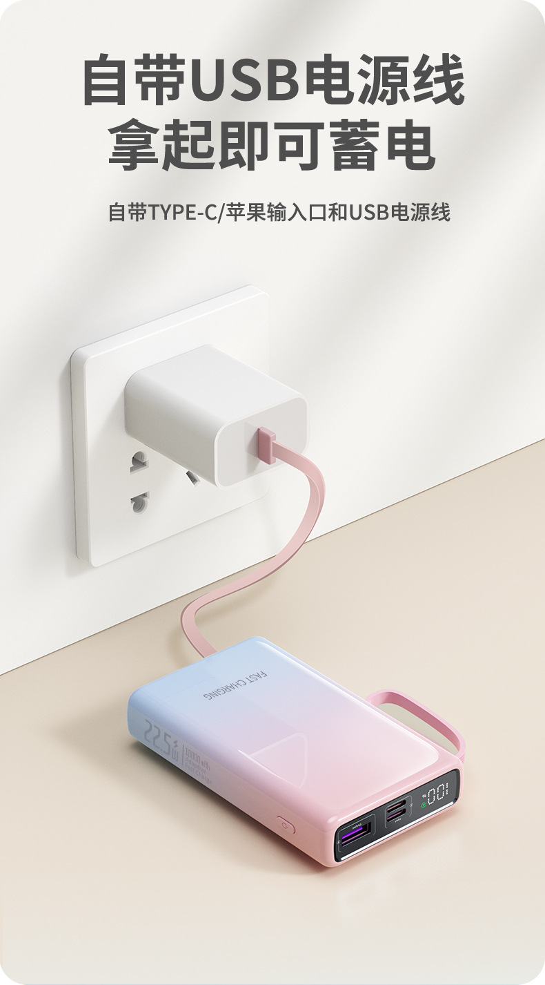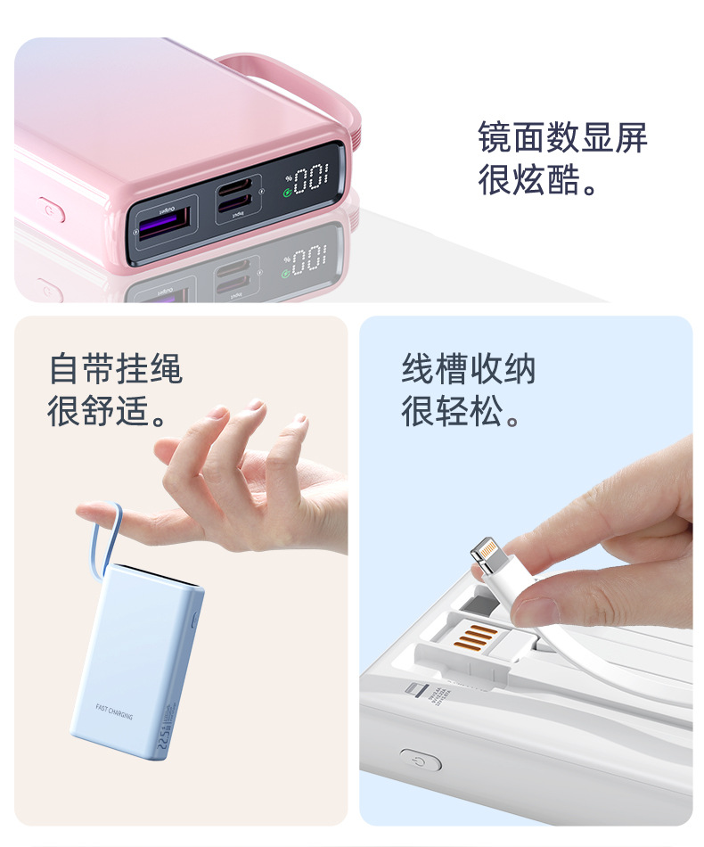 compact and portable, with data cable, supports fast charging and digital power display