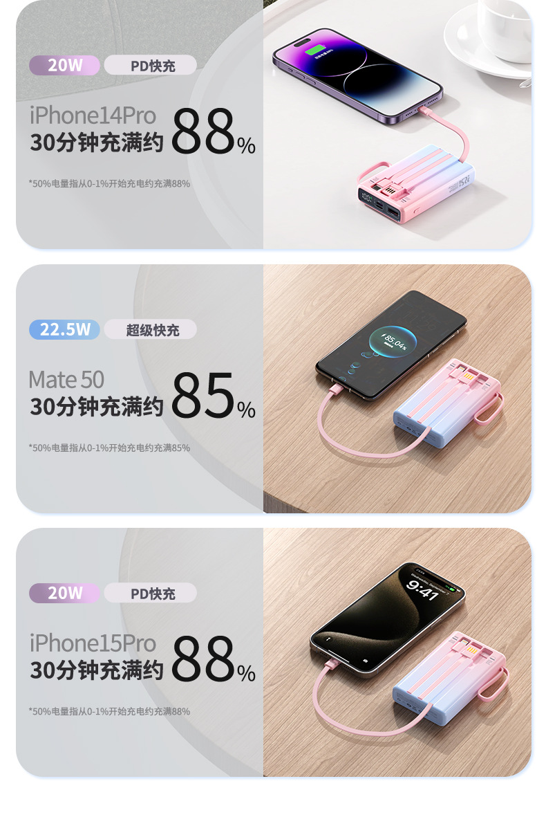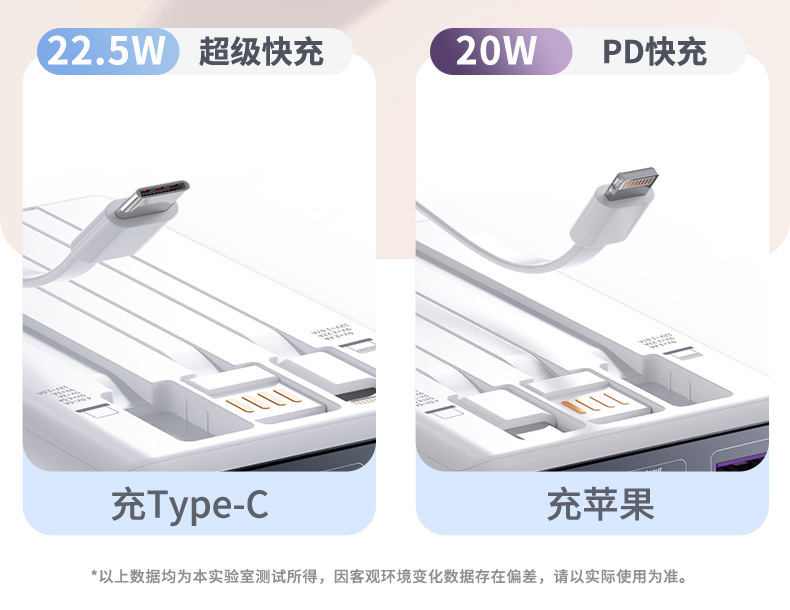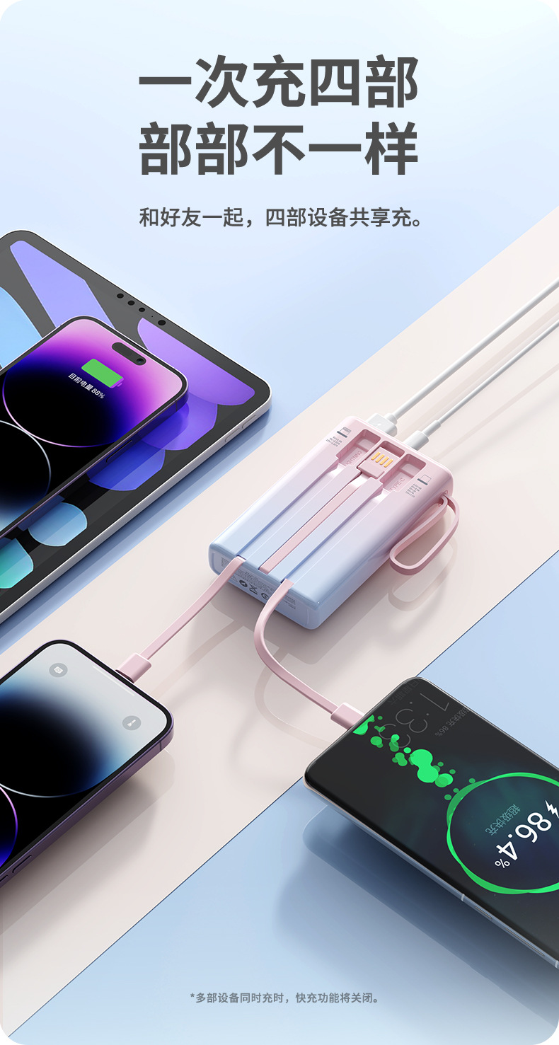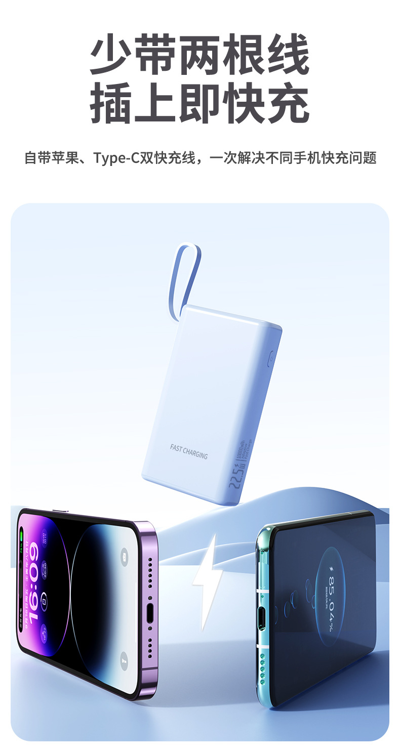 compact and portable, with data cable, supports fast charging and digital power display