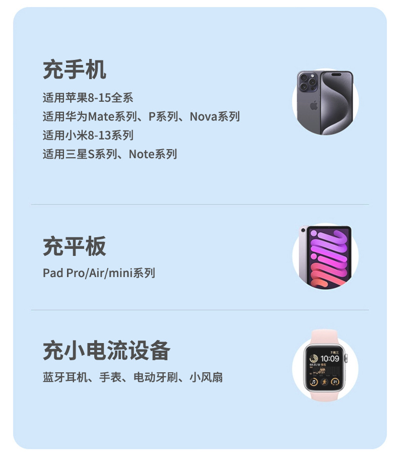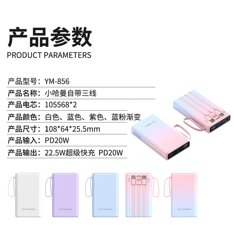 function: compact and portable, with data cable, supports fast charging and digital power display