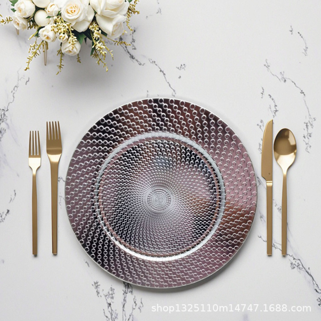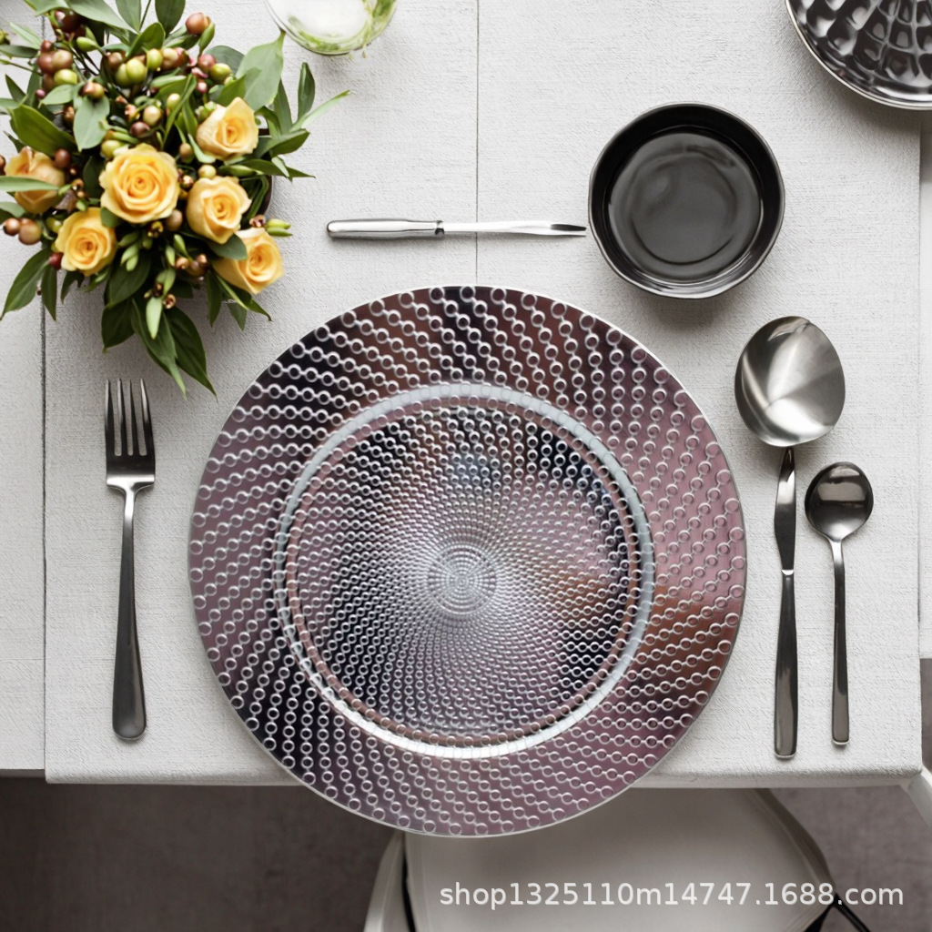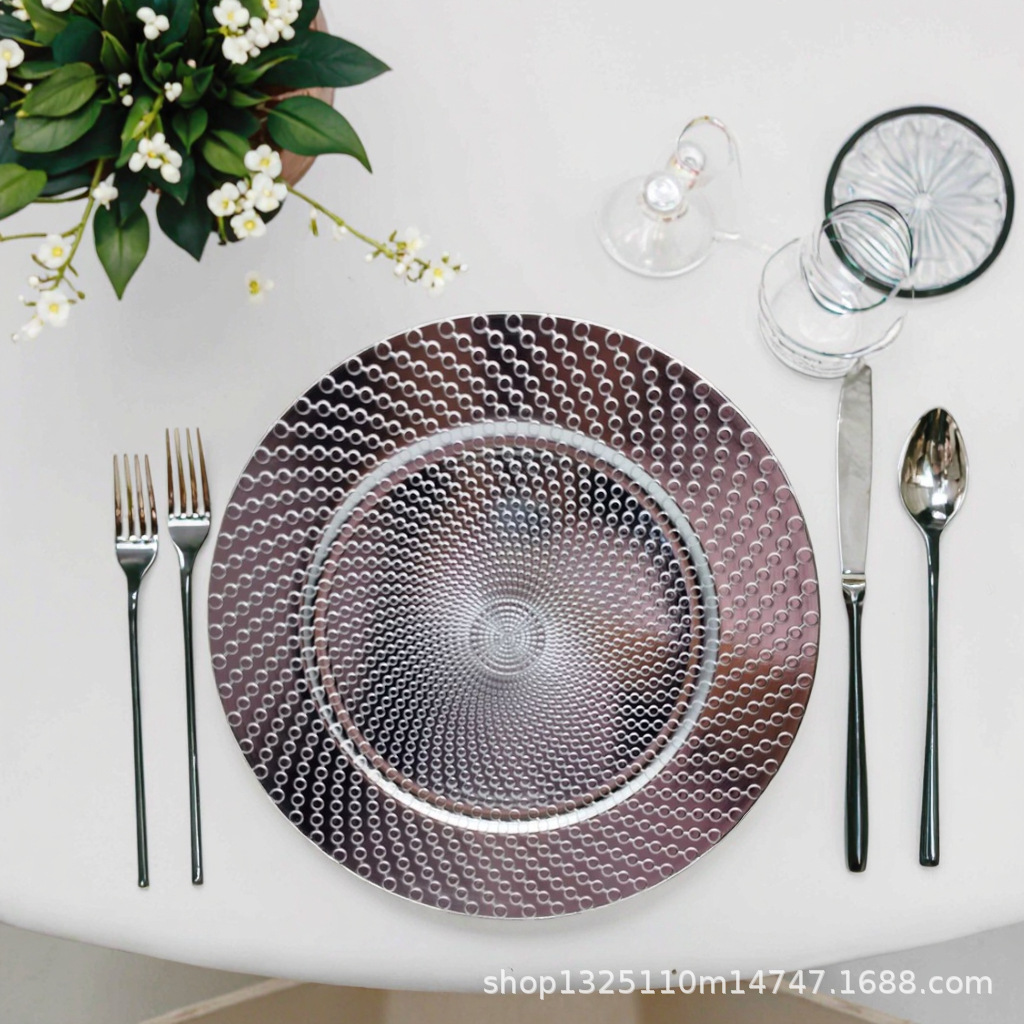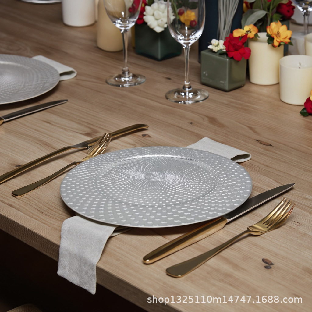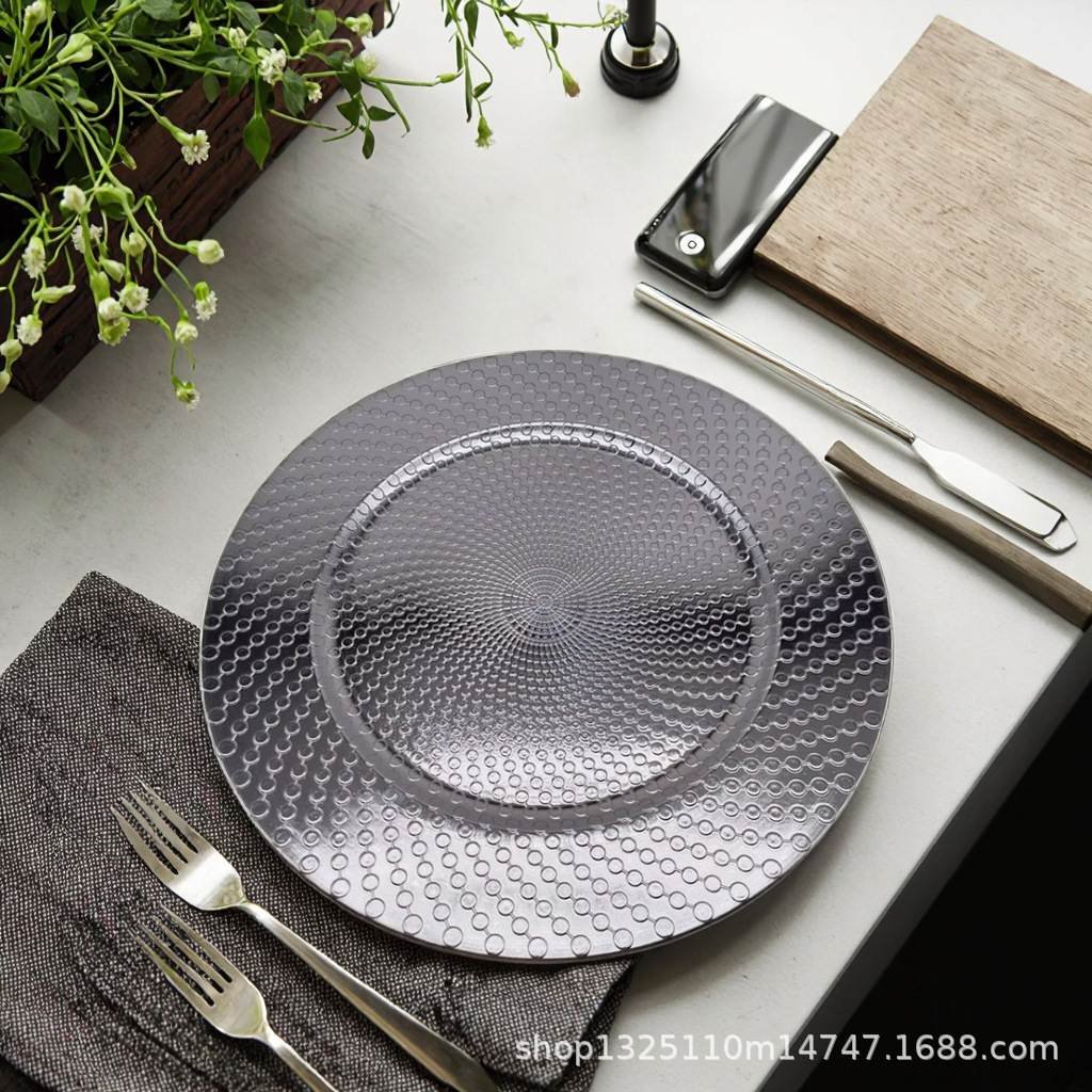 new european-style electroplated round plate hotel wedding birthday party tray stationery bag craft plate direct manufacturer