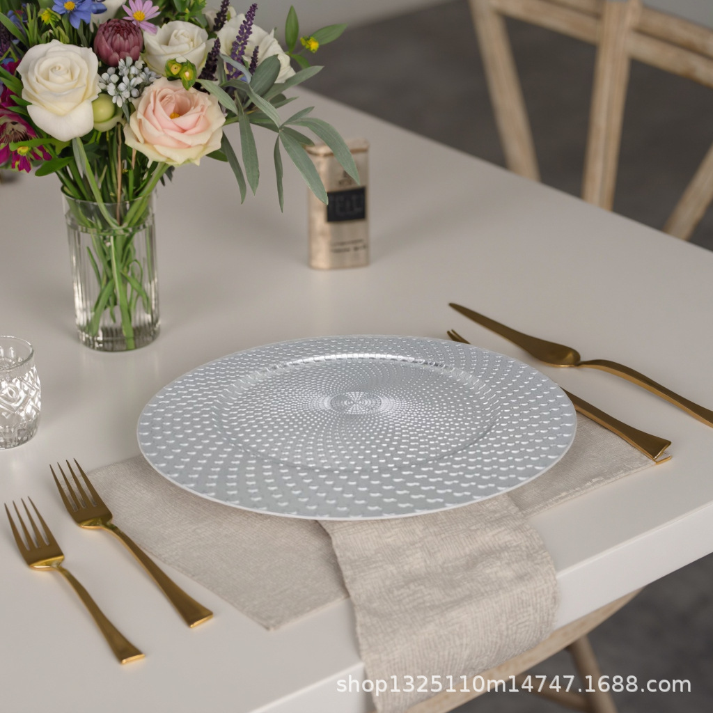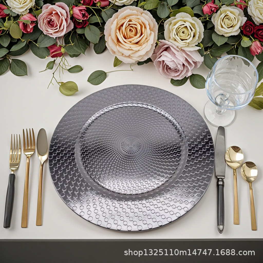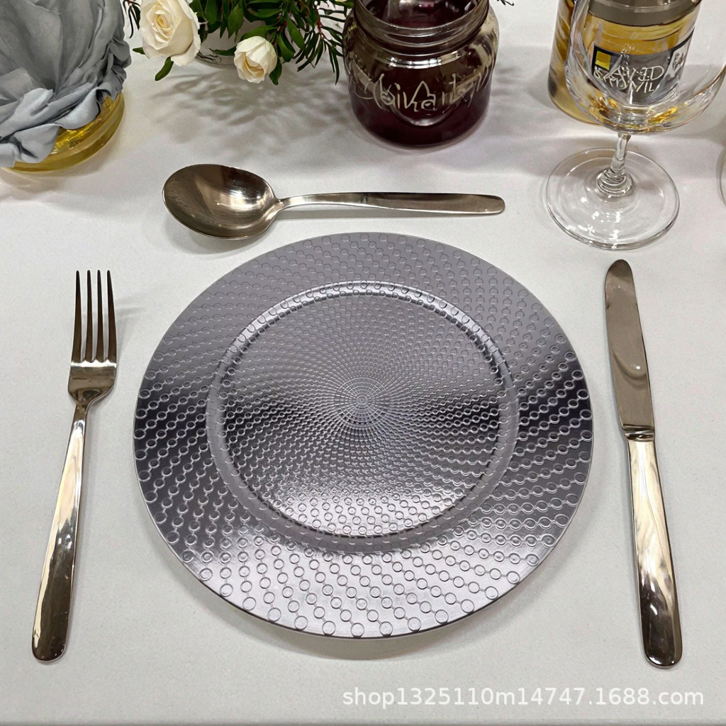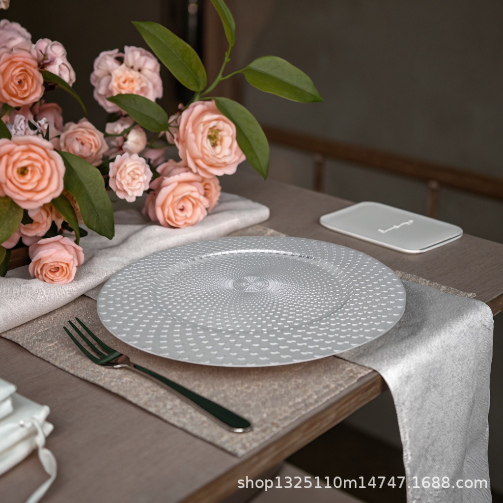 new european-style electroplated round plate hotel wedding birthday party tray stationery bag craft plate direct manufacturer