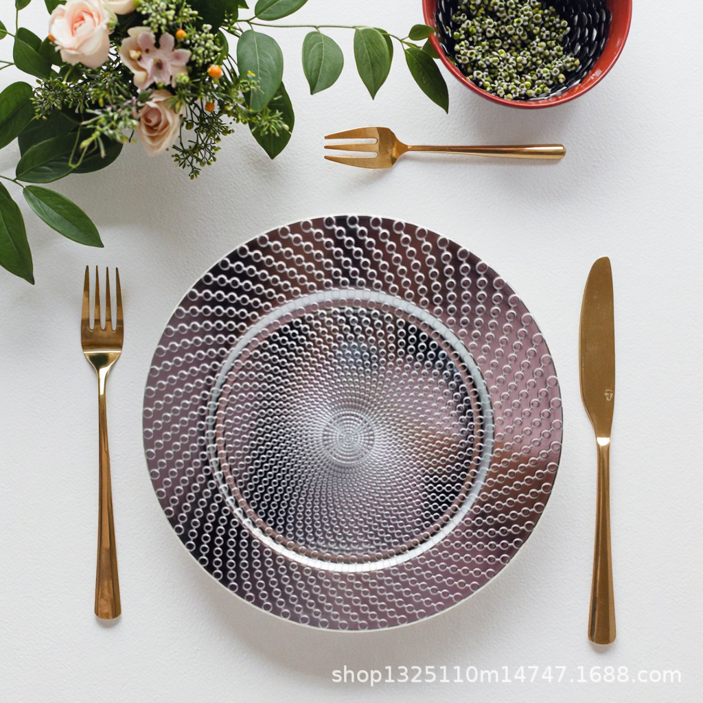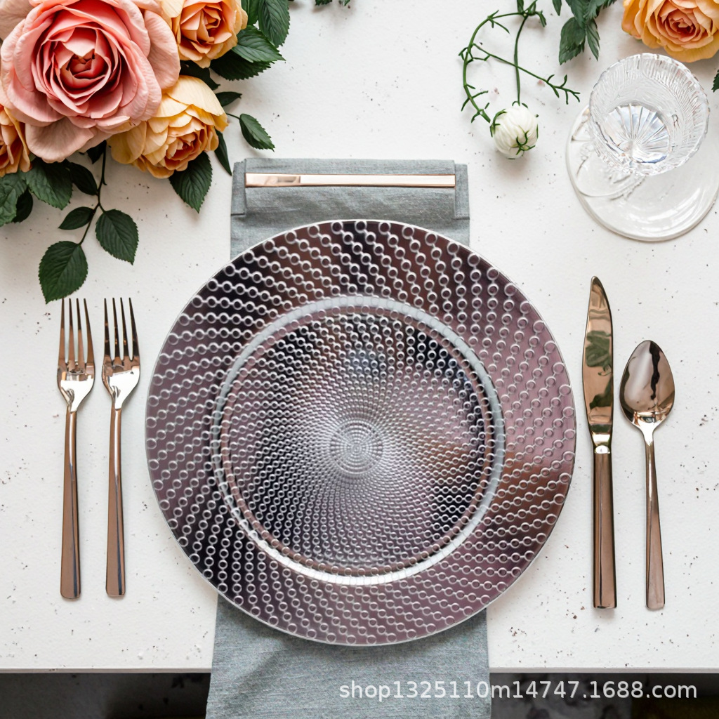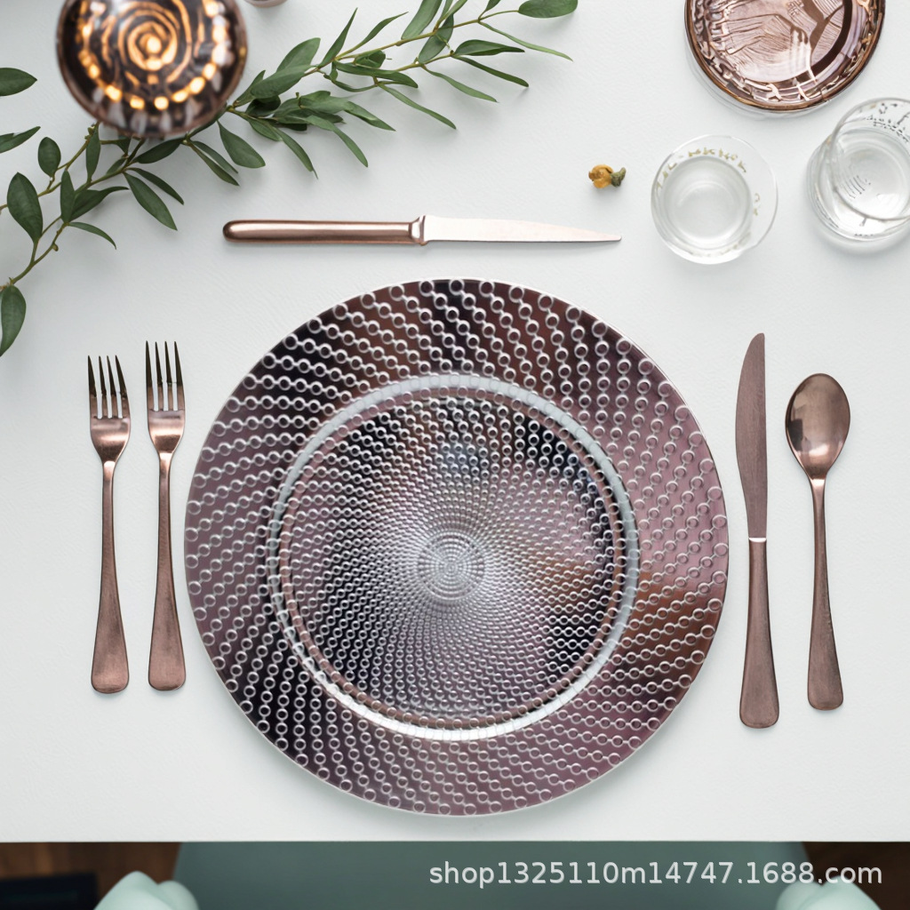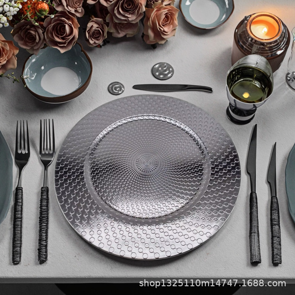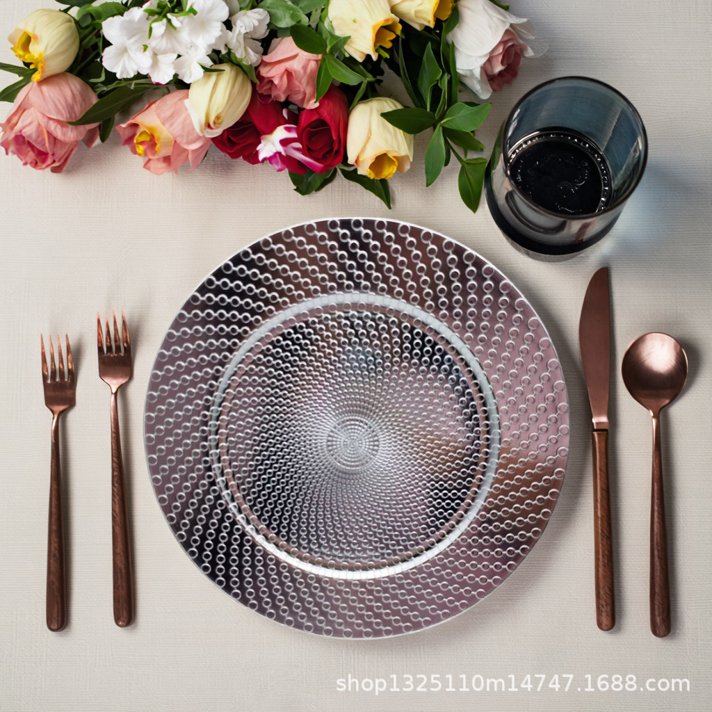 new european-style electroplated round plate hotel wedding birthday party tray stationery bag craft plate direct manufacturer