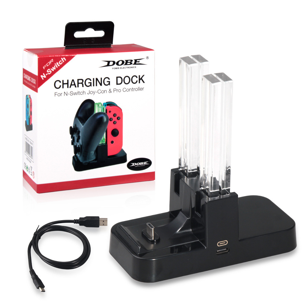 The Switch Mini Controller Charging Stand is a charging product designed to meet the charging needs of Switch controllers. This product can charge four mini controllers simultaneously (i.e., two sets of Switch controllers at the same time) or charge the PRO controller. When charging is needed, you only need to insert the corresponding Switch mini controllers into the charging stand.
