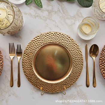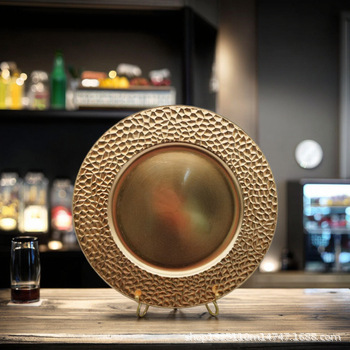 new european-style electroplated round plate hotel wedding birthday party tray stationery bag craft plate direct manufacturer