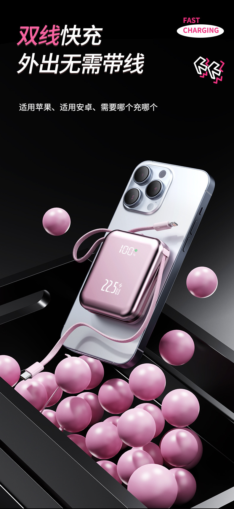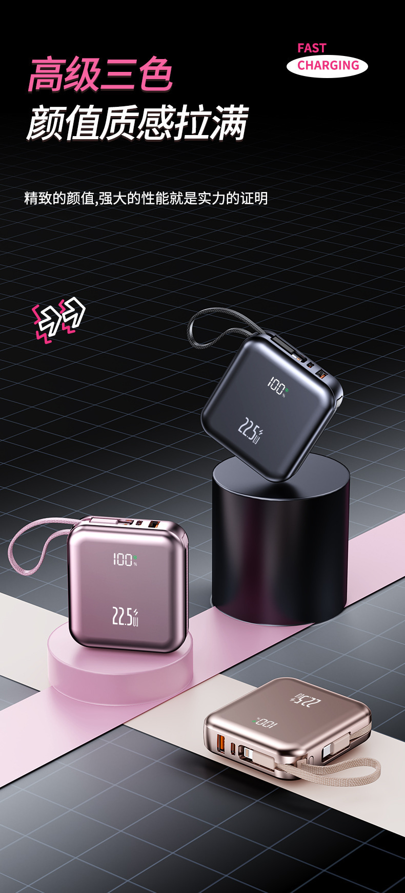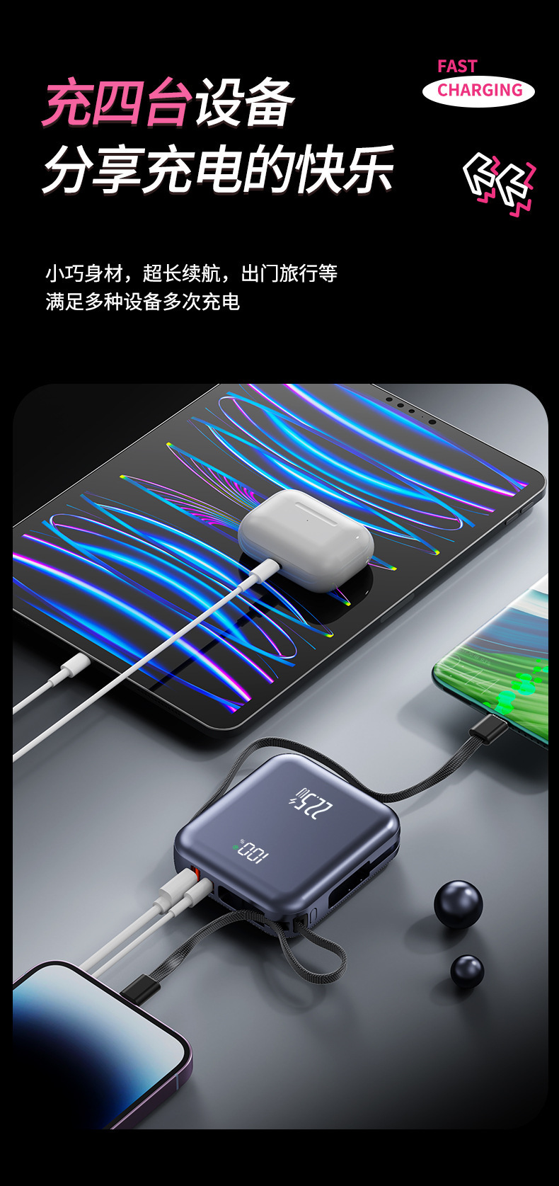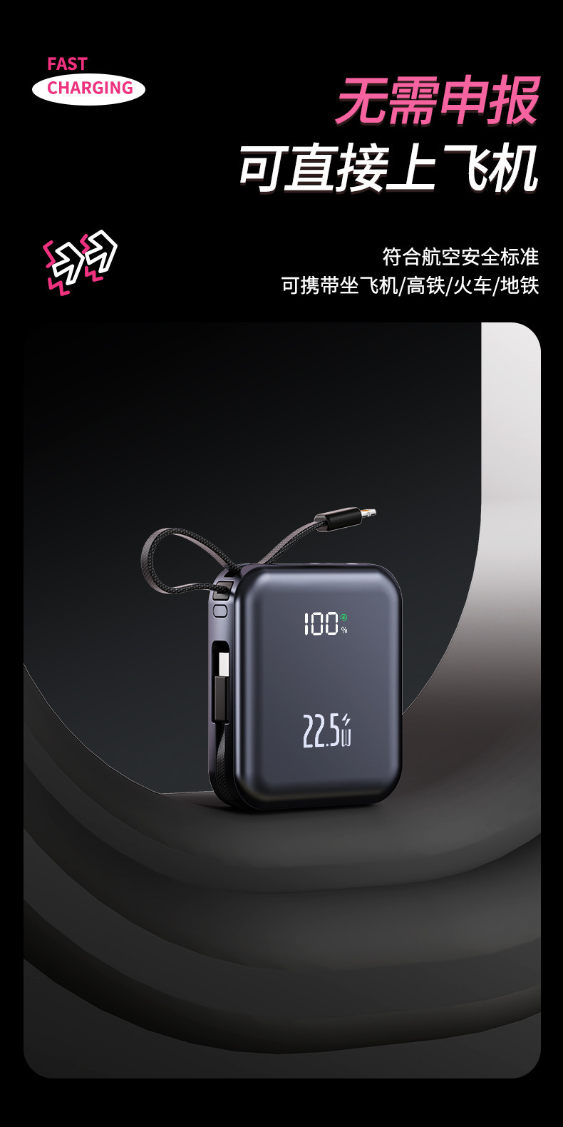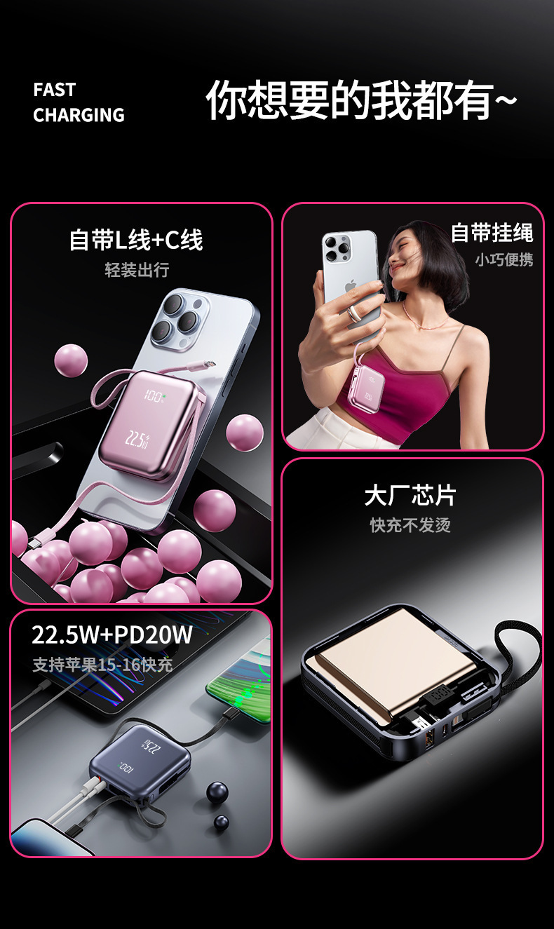 small and portable, with flexible wire, supports fast charging and digital power display