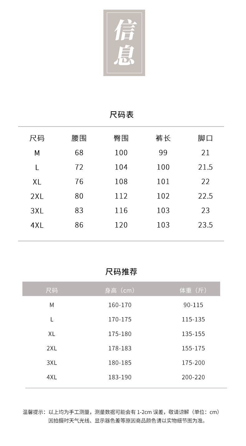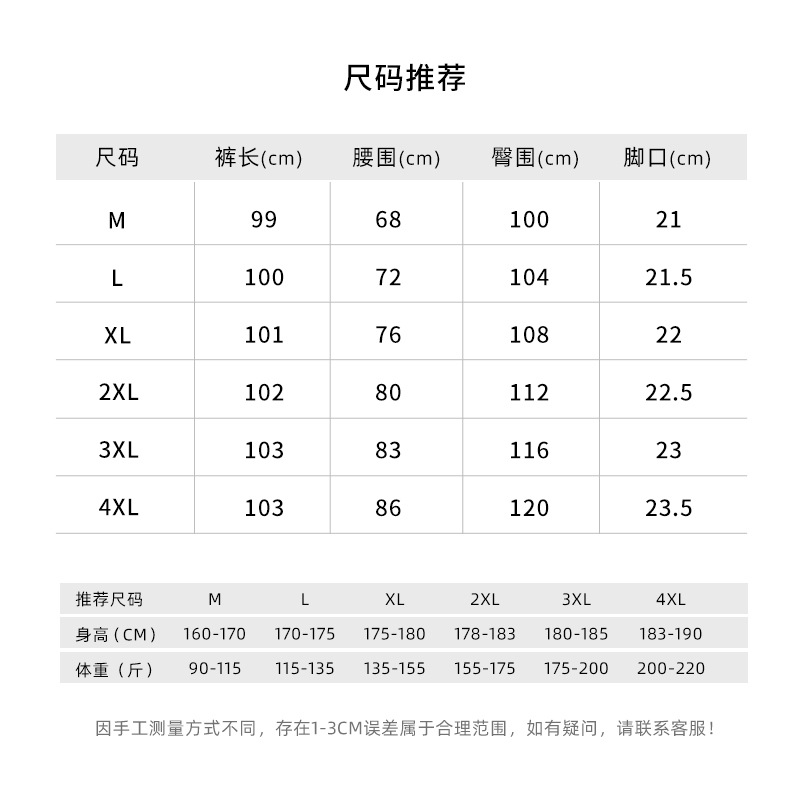 | 3xl pants are 103cm long; recommended for users weighing 175–200 jin. | CN¥ 123.75 |