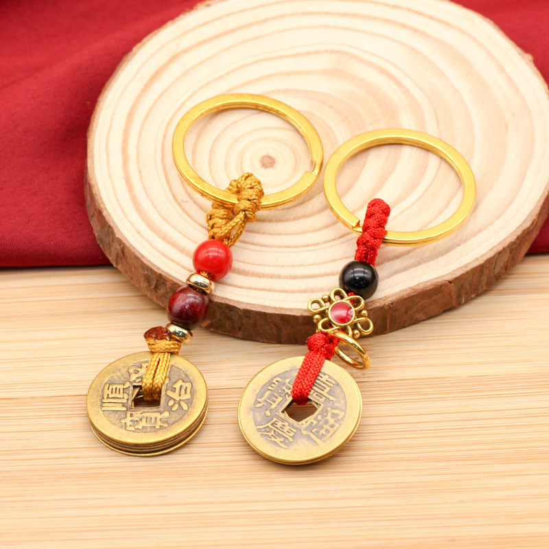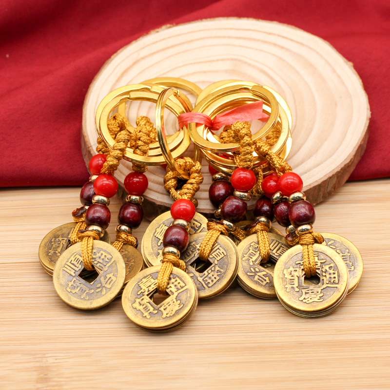 copper plating qing dynasty five emperors' coins brown rope
