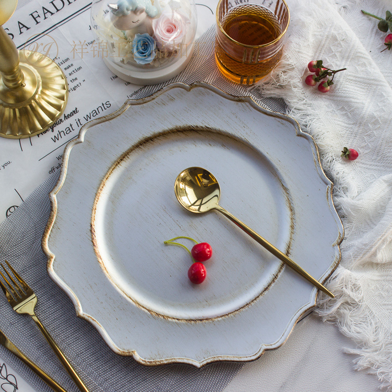 new european-style vintage round plate hotel banquet tray stationery bag fruit plate decorative tray direct factory