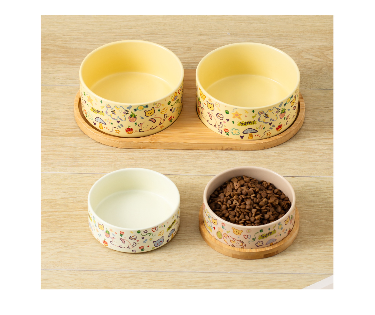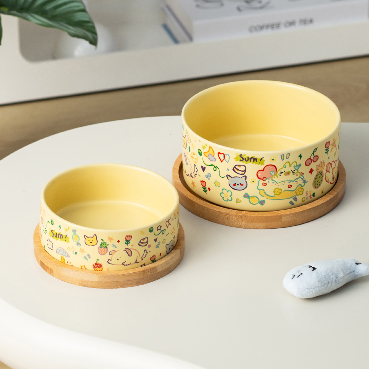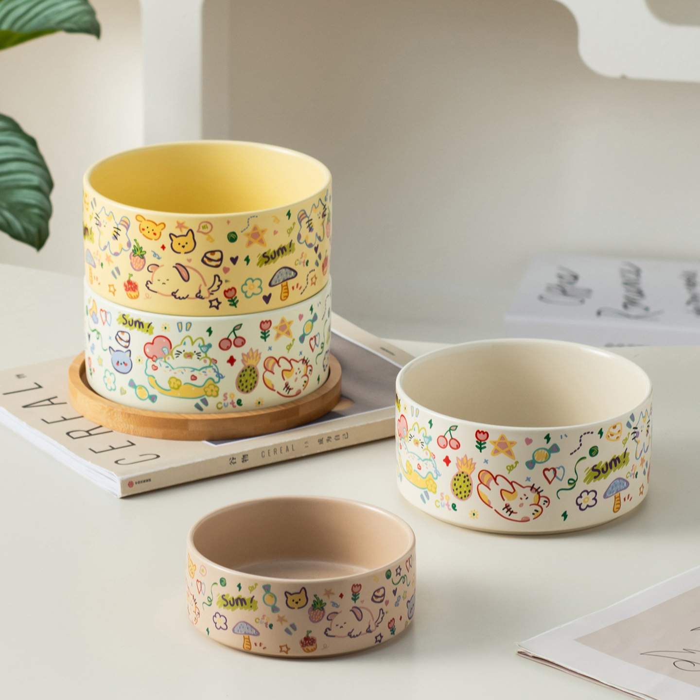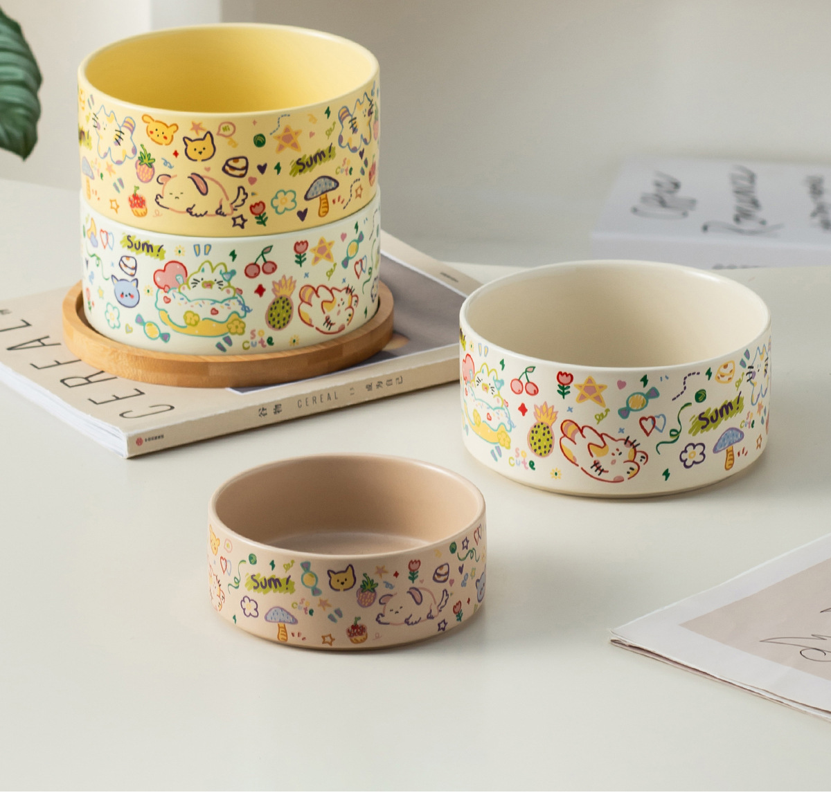medium graffiti upright-mouthed bowl [matte custard] + double bowl tray