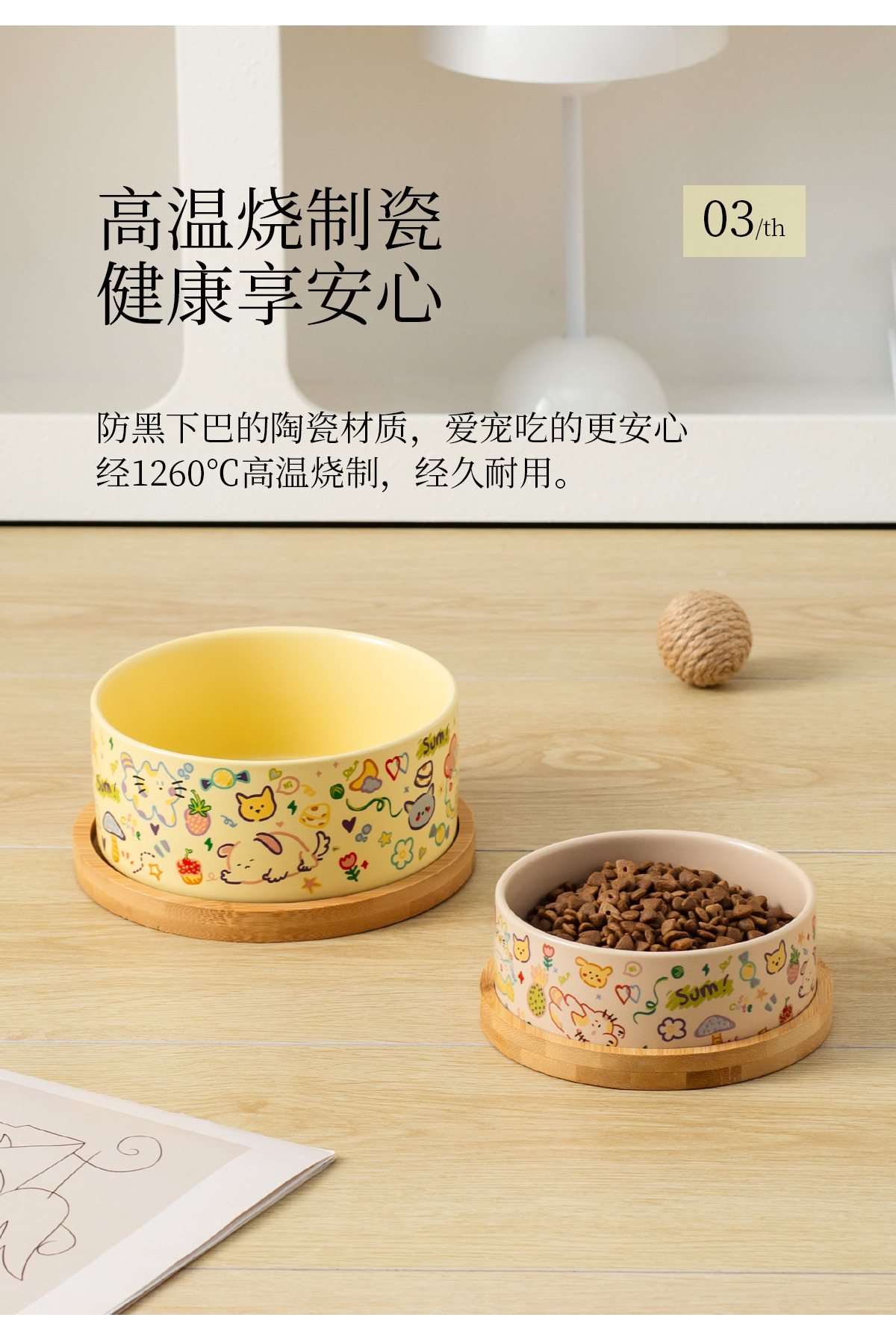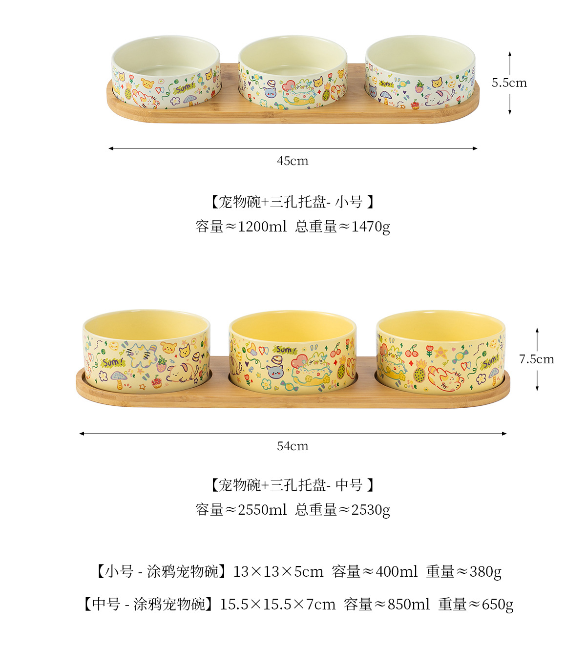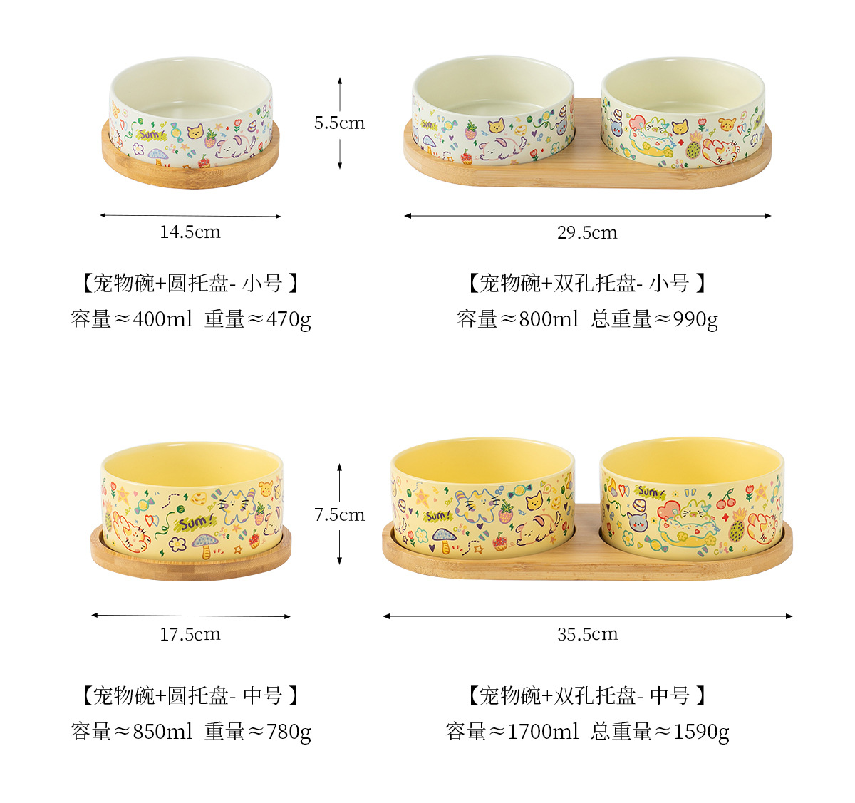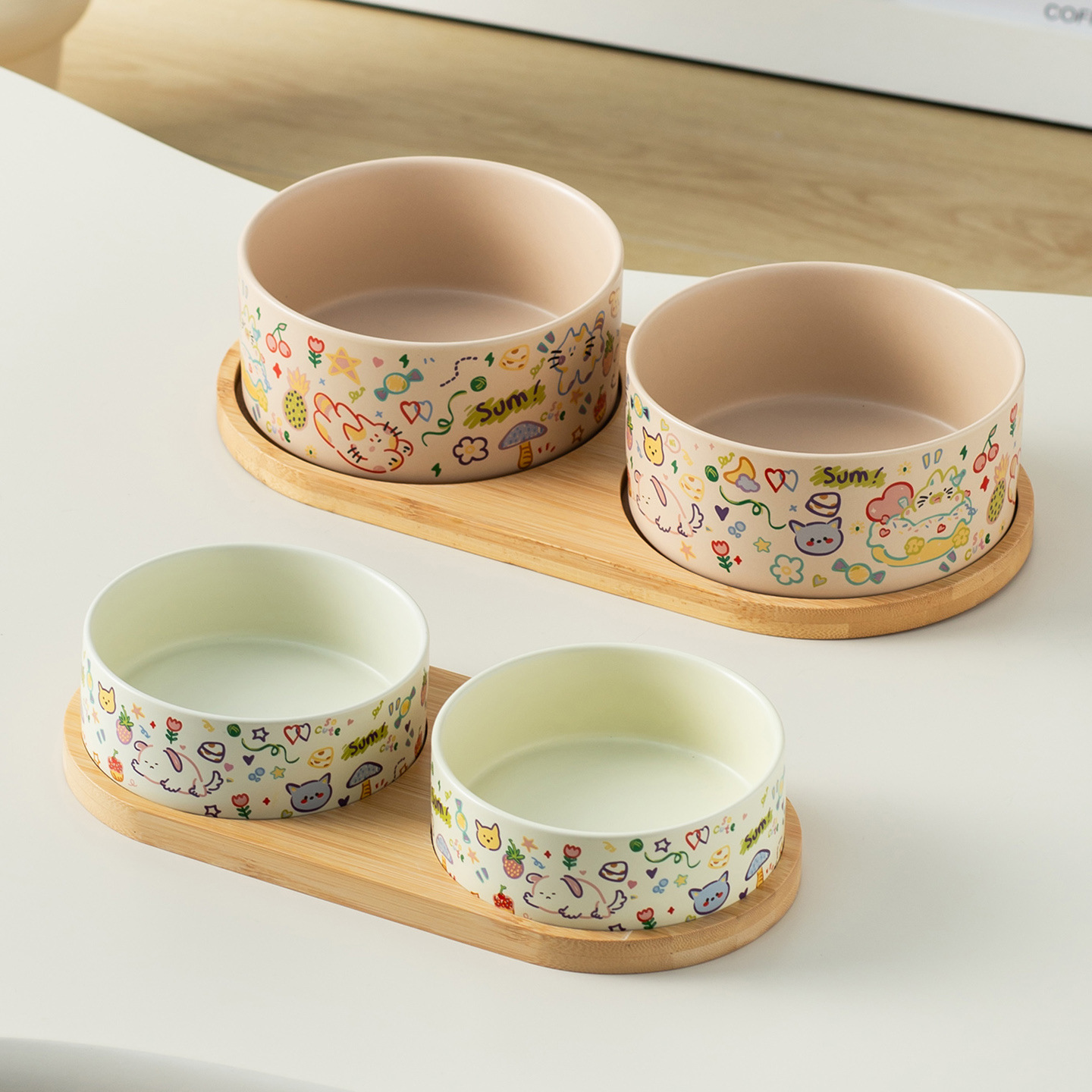 medium graffiti upright-mouthed bowl [matte custard] + double bowl tray