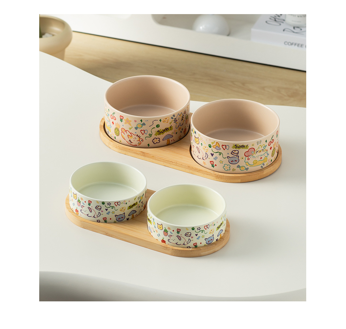 medium graffiti upright-mouthed bowl [matte milk tea] + double bowl tray
