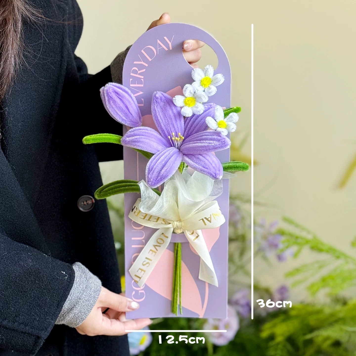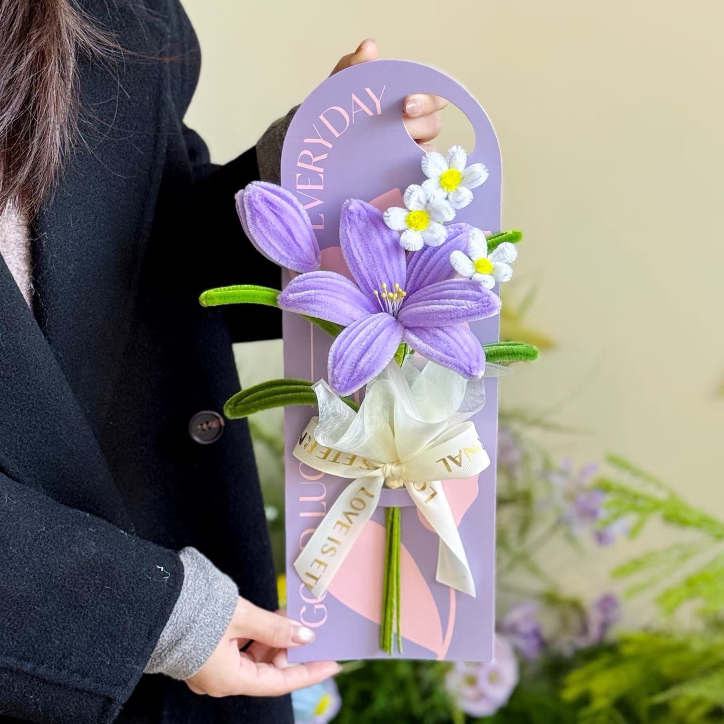 purple lily card bouquet