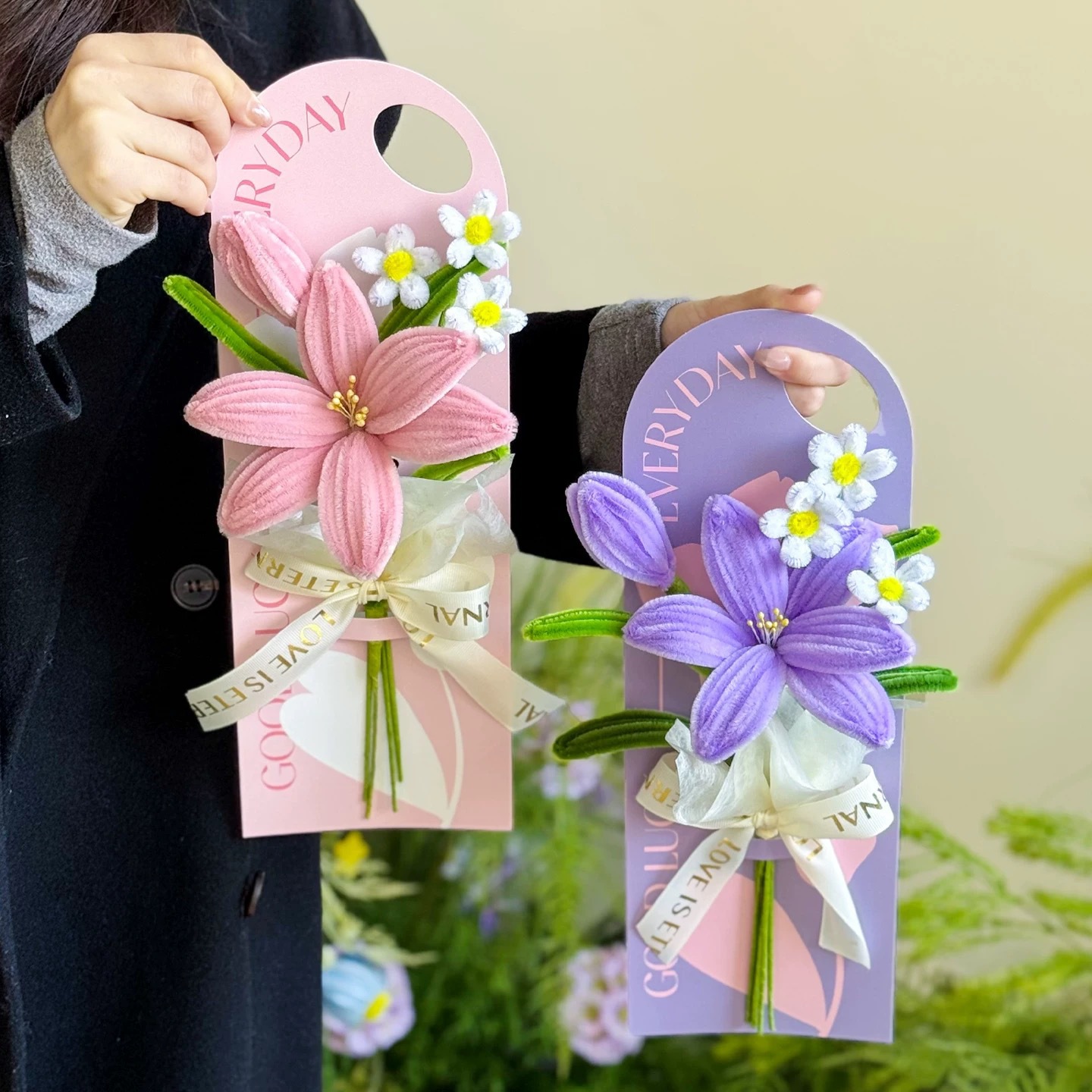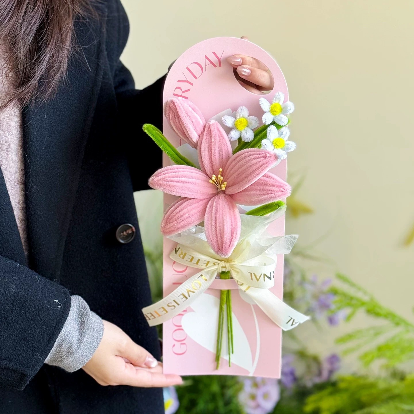 pink lily card bouquet